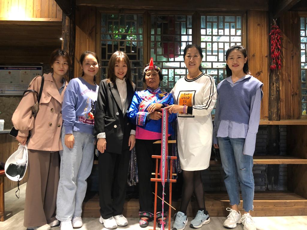 师生表演了非遗项目——畲族彩带。畲族彩带是畲族传统的手工艺品,是畲族的吉祥物,是畲族文化“活”着的文物。传承人雷德花一边编织彩带,一边清唱畲族民歌《编彩带》,这种彩带编织表演已被列入浙江省第二批非物质文化遗产。同学们通过雷阿姨精彩的表演和耐心的介绍,领略到了彩带编织的魅力。