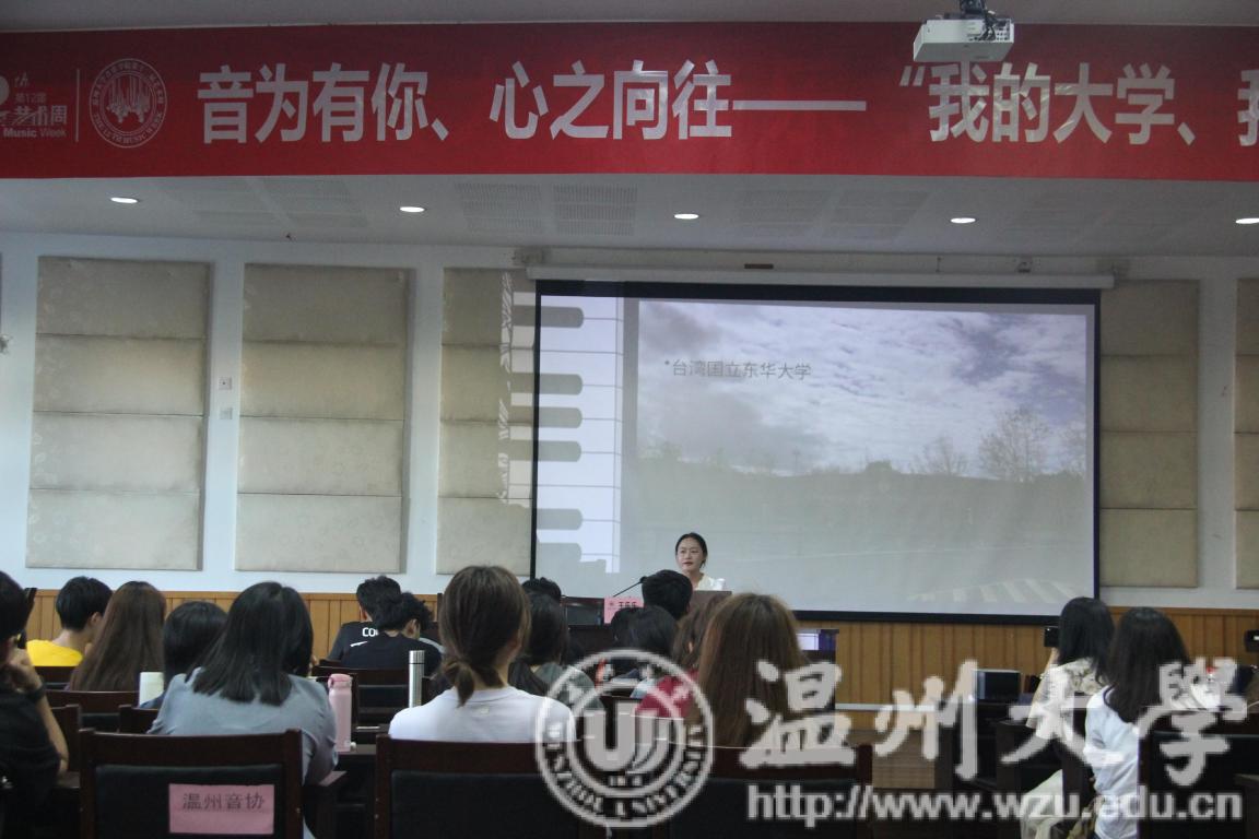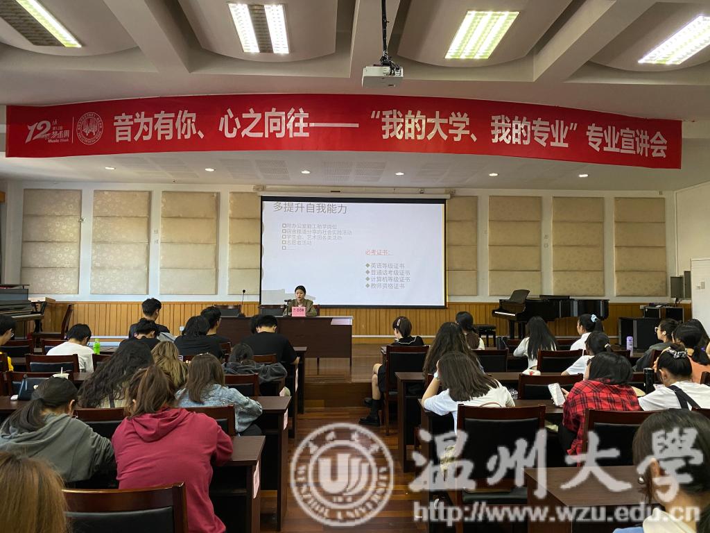 2020年11月18日下午,在温州大学音乐楼201学术报告厅顺利举行了《音为有你,心之向往---“我的大学、我的专业”专业宣讲会》。优秀学生代表汪芯如、郭艺卉、王乐乐、同学出席了会议,全体20级学生以及其他专业的学生积极认真参加了宣讲会。