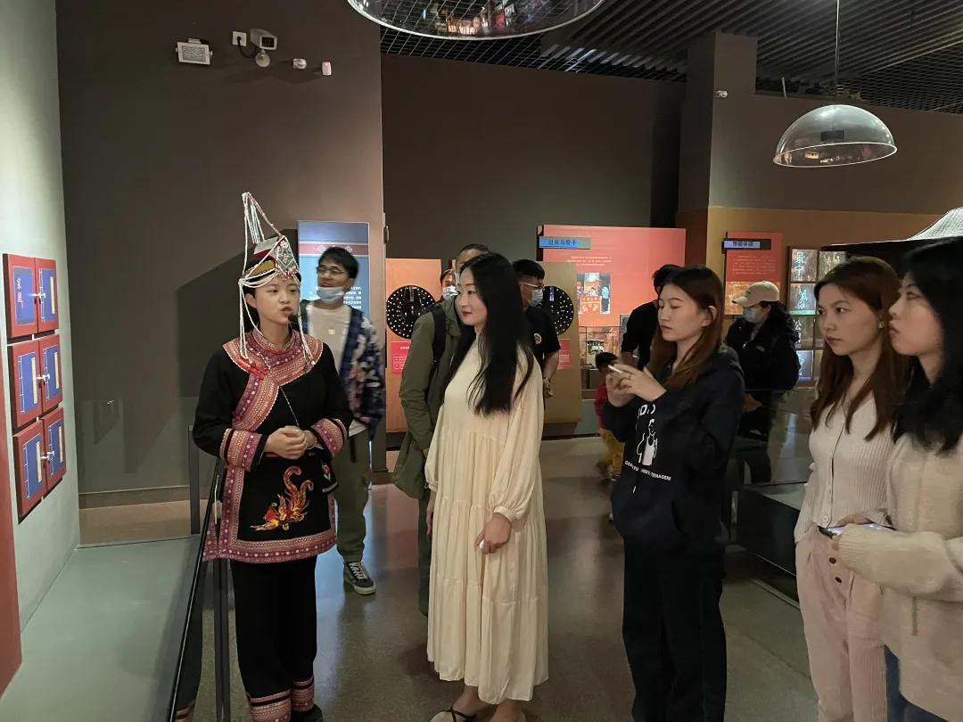 学习与采风团首先参观了“畲族博物馆”。同学们有序参观学习了畲族博物馆,在博物馆讲解员细致的讲解下,对景宁畲族的人口分布、民居、手工、饮食、宗祠族规、节庆、音乐、舞蹈等背景知识都有了非常细致的了解,对深入景宁民间采风打下了良好的基础。