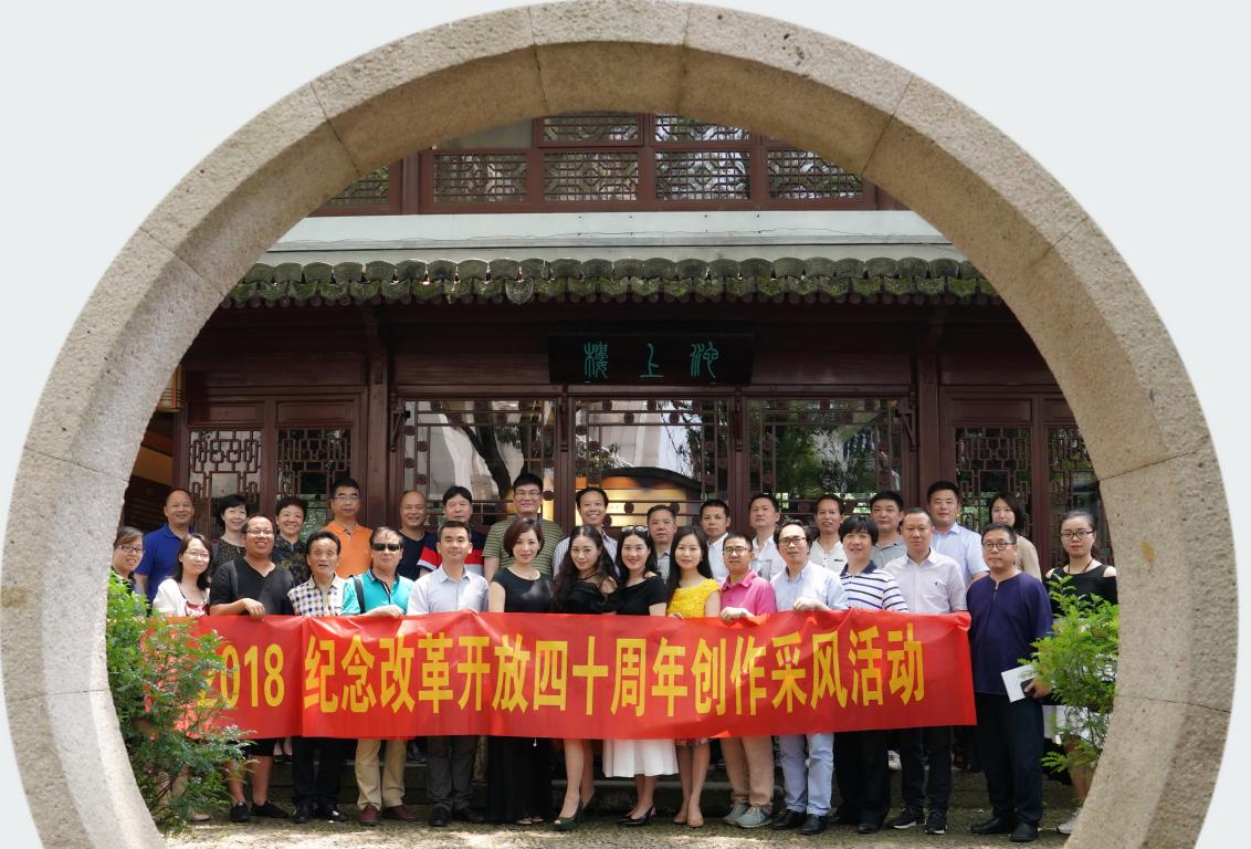 王文韬、王志毅、柏互玖、蔡军四位老师受邀参加由温州文化艺术研究院举办的2018“走进新时代”纪念改革开放四十周年创作采风活动,活动共吸引温州市文化艺术届各专业艺术团体的剧作家、导演、作曲家、音乐人、社会各界艺术工作者代表40余人参加,大家齐聚一堂,共听、共享、共讨当下温州市艺术创作等相关问题。