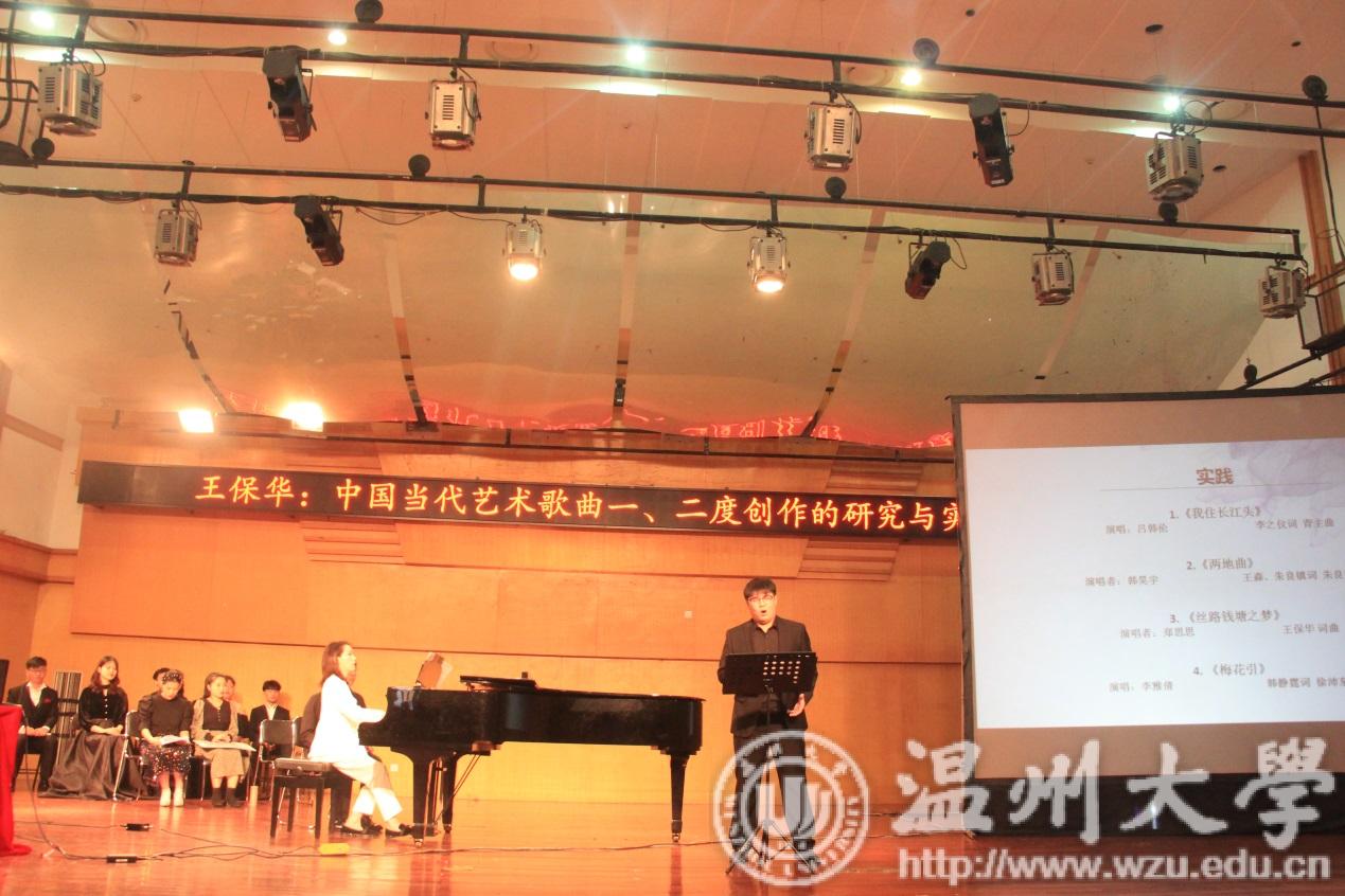 举办了《中国当代艺术歌曲一、二度创作的研究与实践》讲座活动,本次讲座邀请到了浙江传媒学院文艺研创中心总监,教育部高校音乐与舞蹈学类专业教指委委员,“中国好声音“特约乐评人王保华教授。