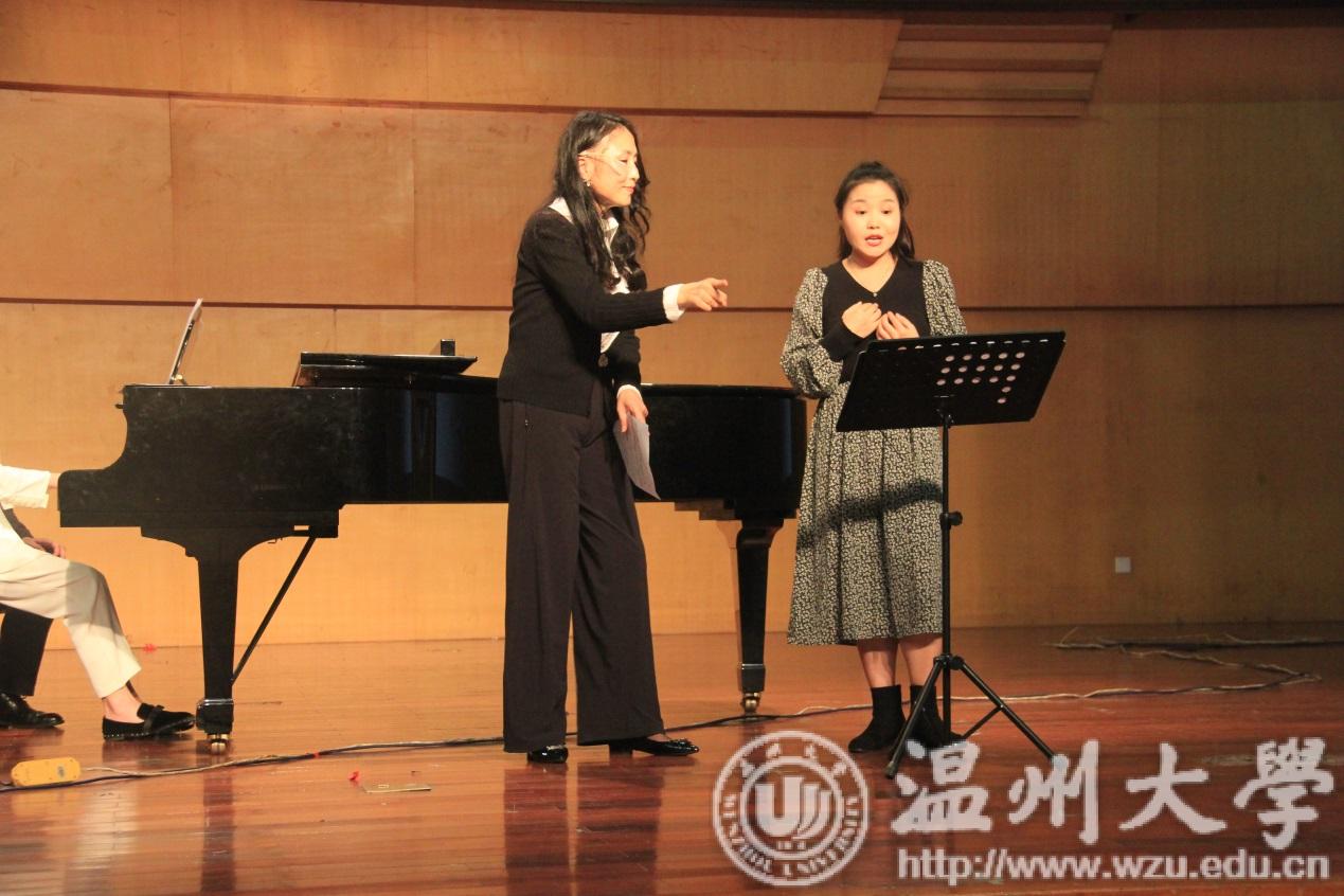 接下来是音院学子带来的艺术歌曲演唱,王教授对每首歌曲都做出了细致的点评,并提出了有效的改正建议。最后,吴群老师为在场观众带来了一首欢快的艺术歌曲《地球是个圆》,把现场气氛再度带入高潮。