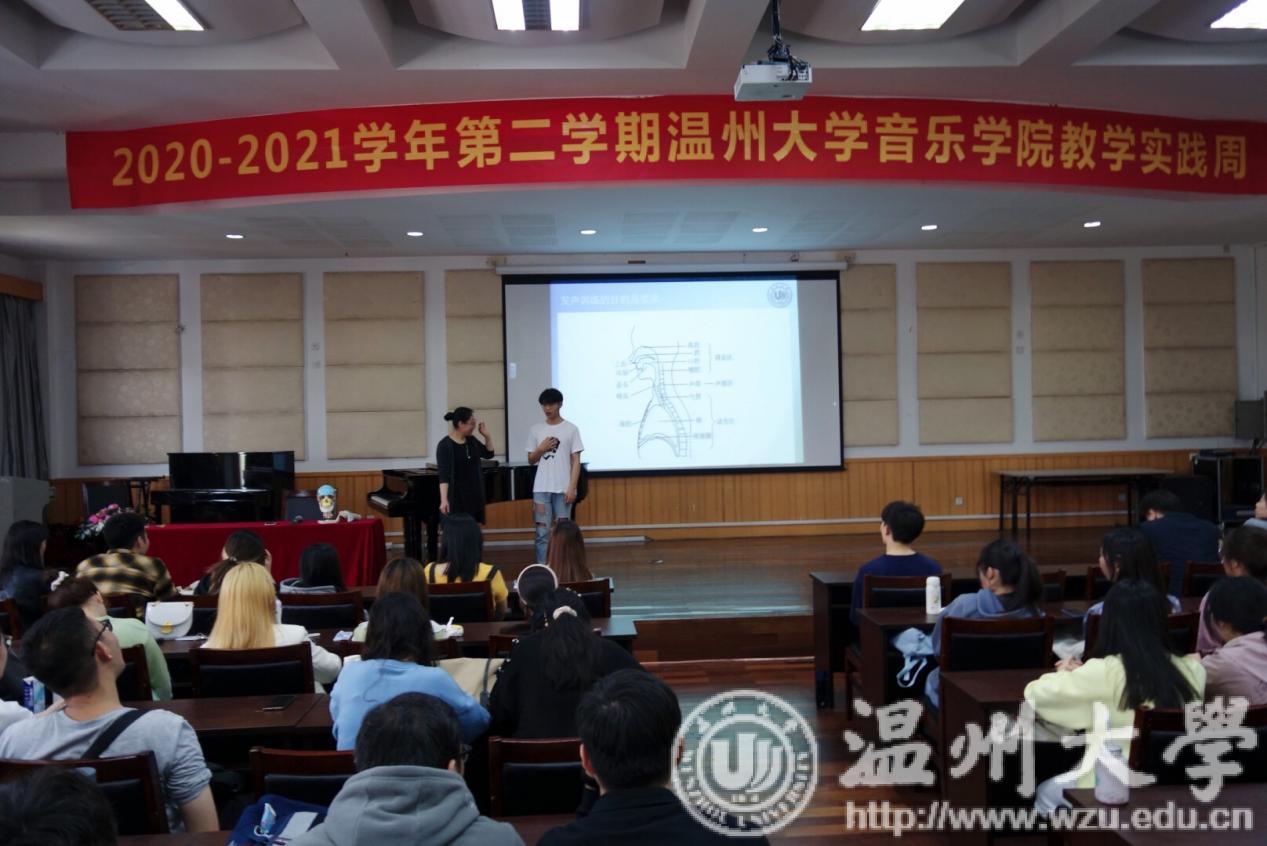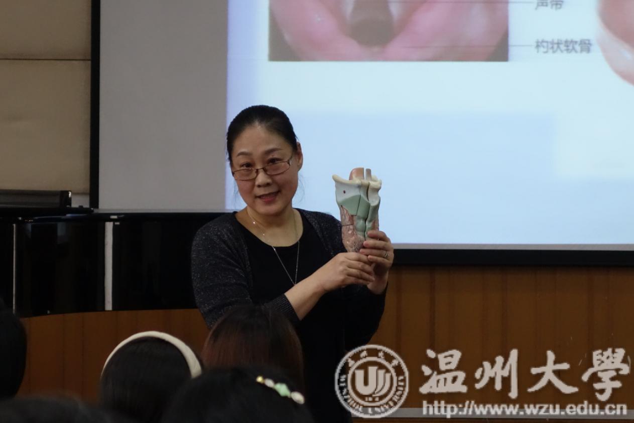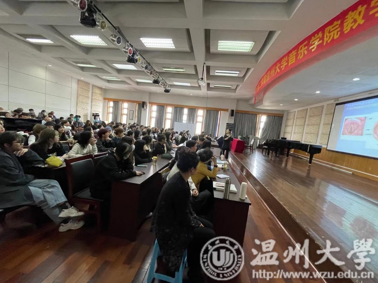 的王秀敏老师。18音表、19音教、19音表、20音乐学(师范)、20音乐学专升本(师范)班的同学和声乐系全体教师参加了本次讲座。讲座由叶文辉老师主持。