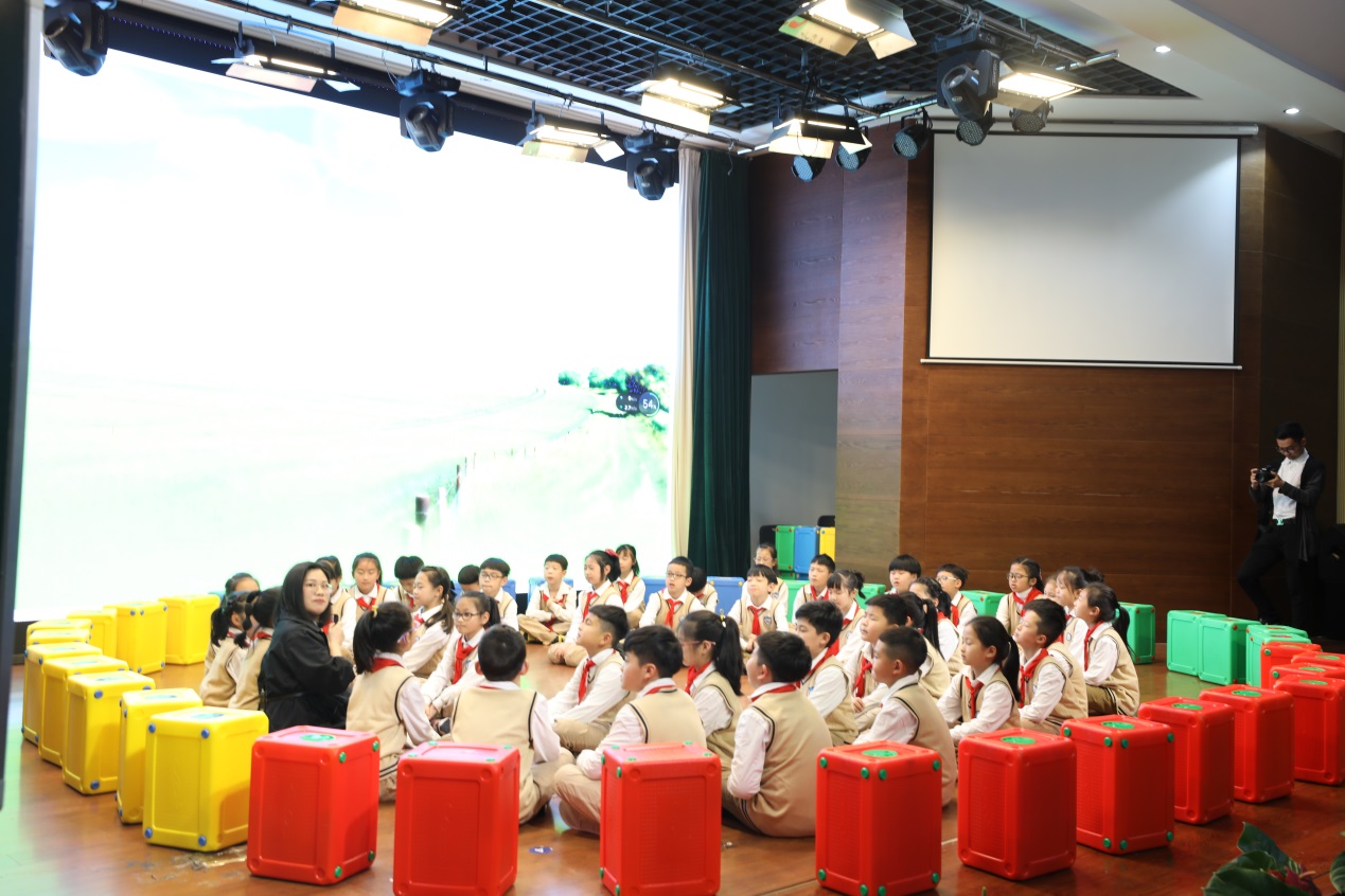 3月30日上午第一节课由张梦雅老师主讲,她和三年(2)班的同学们一起呈现《小巴郎,童年的太阳》。老师采取听辨方式,听辨三段少数民族的歌曲简单快速的导入主题。接着通过敲打节拍、乐器伴奏、游戏互动、歌舞结合等形式很好的解决了本节课的重难点。在课堂的最后,老师结合实时国家热点“支持新疆棉花”,将整堂课进行了升华,给学生传播积极向上的思想。