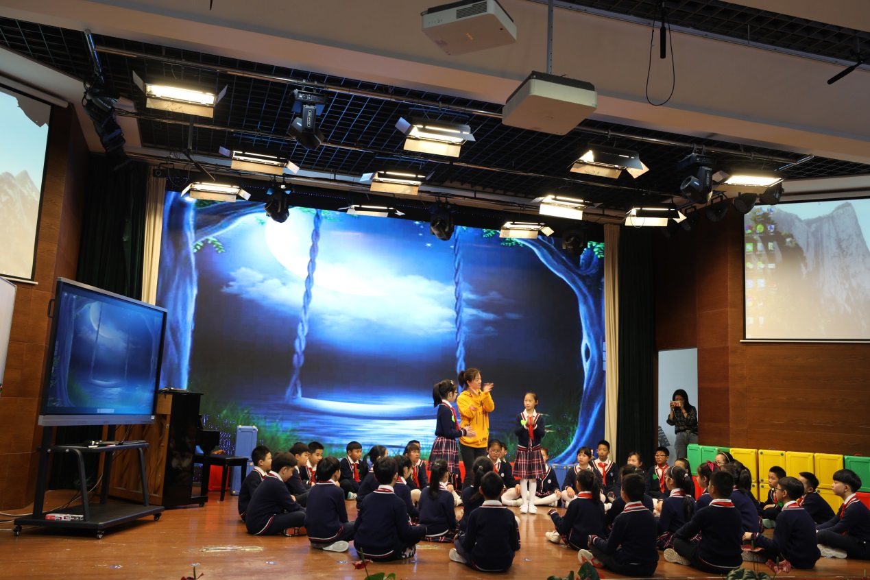 第二节课是宋琼妮老师带来的《乘雪橇》,该乐曲是管弦乐,老师运用动作肢体语言来让学生感受主题音乐,再分别告诉学生们主题音乐的变化。教学井然有序的进行着,细致的解说让学生们深感节日欢快和喜悦。