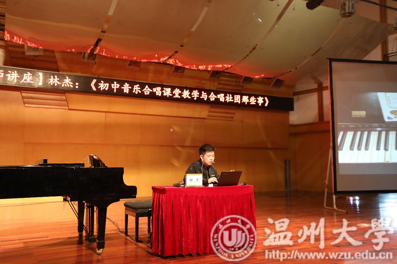 教学实践周名师讲座之《初中音乐合唱课堂教学与合唱社团那些事》主题讲座。主讲人为温州市绣山中学音乐教师、鹿城区教坛新秀、浙江省中小学生艺术节优秀指导师林杰老师。参与本次讲座的有18音表、19音教、19音表、20音乐学(师范)、20音乐学专升本(师范)的同学们。