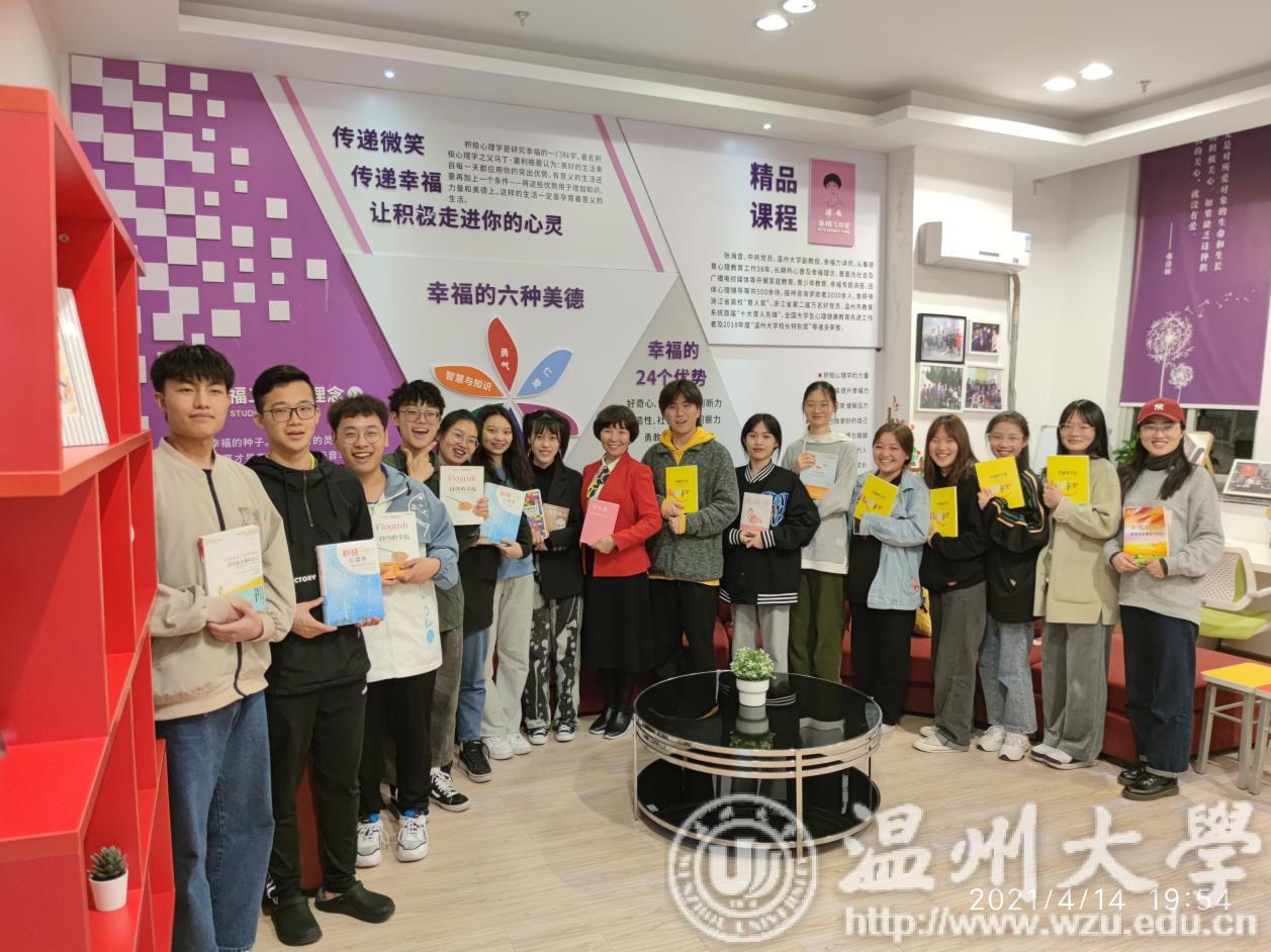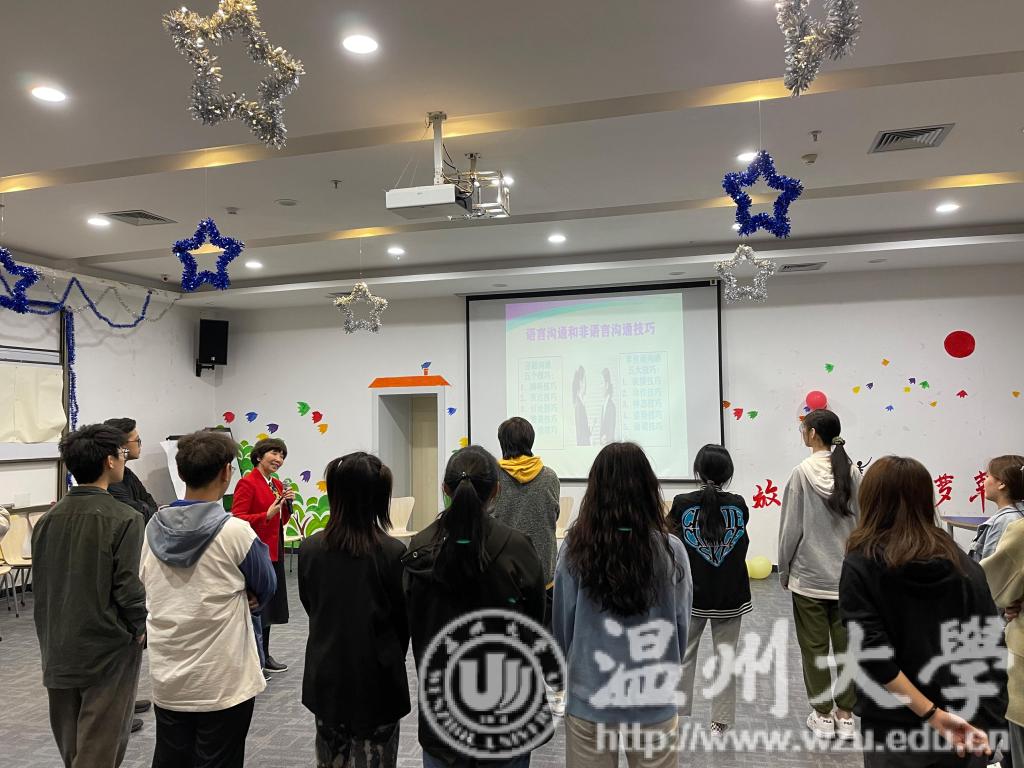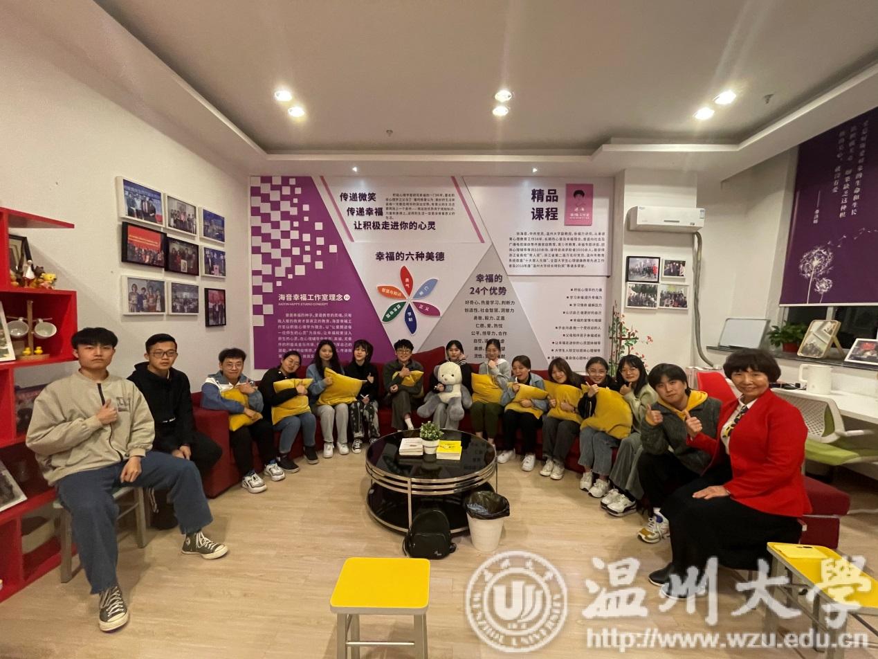 在幸福工坊开展了《学习幸福——提升人际交往技巧》主题讲座。本次活动有幸邀请到温州大学副教授、幸福力讲师、温州大学首席心理咨询师和国家二级心理咨询师张海音老师,学院心理辅导员曹清清老师、全体心理委员和部分感兴趣同学参加。