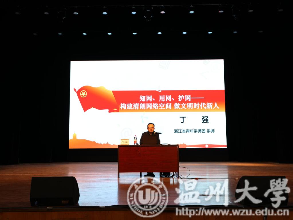 本次课程共有四节课。第一节课“清朗网络空间”专题,是由温州大学团委副书记、浙江青年讲师团讲师丁强老师主讲。丁老师联系了人类文明史,以及各个时期传播信息的媒介强调了构建网络空间天朗气清的重要性。紧接着他分别为我们讲述网络时代的三大特点及其社会心理,并介绍了相互交织、相互影响的红、黑、灰“三个地带”。最后,还列举了几个网络舆情案例,呼吁我们大学生也应自觉遵守法律和道德规范,做到依法上网、文明上网、安全上网,坚决管好自己,既不从事不法活动,也不当不法分子的帮凶,同时还要加强网络安全意识,对网络信息多保持警惕,不轻信陌生人的言语,避免落入网络诈骗陷阱,切实保护好自己的人身财产安全。