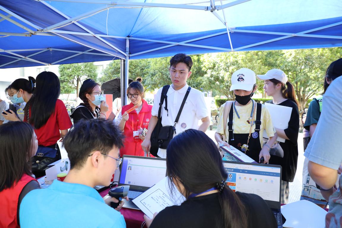 迎新现场,几位新同学刚刚办理完入学报到手续,迫不及待的拿出他们的专属曲谱夹,踏上新生小舞台留下他们大学4年的第一张“舞台照”,从此迎着骄阳正好的夏日,开启了他们大学四年的生涯。