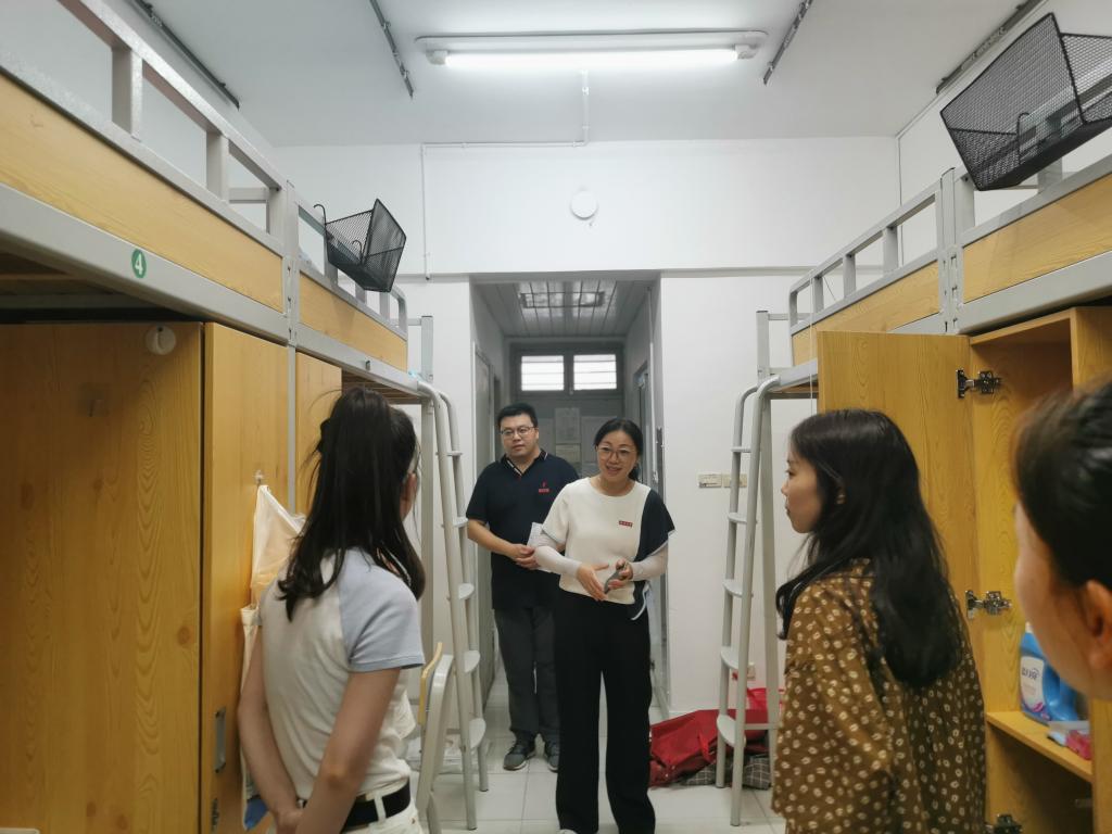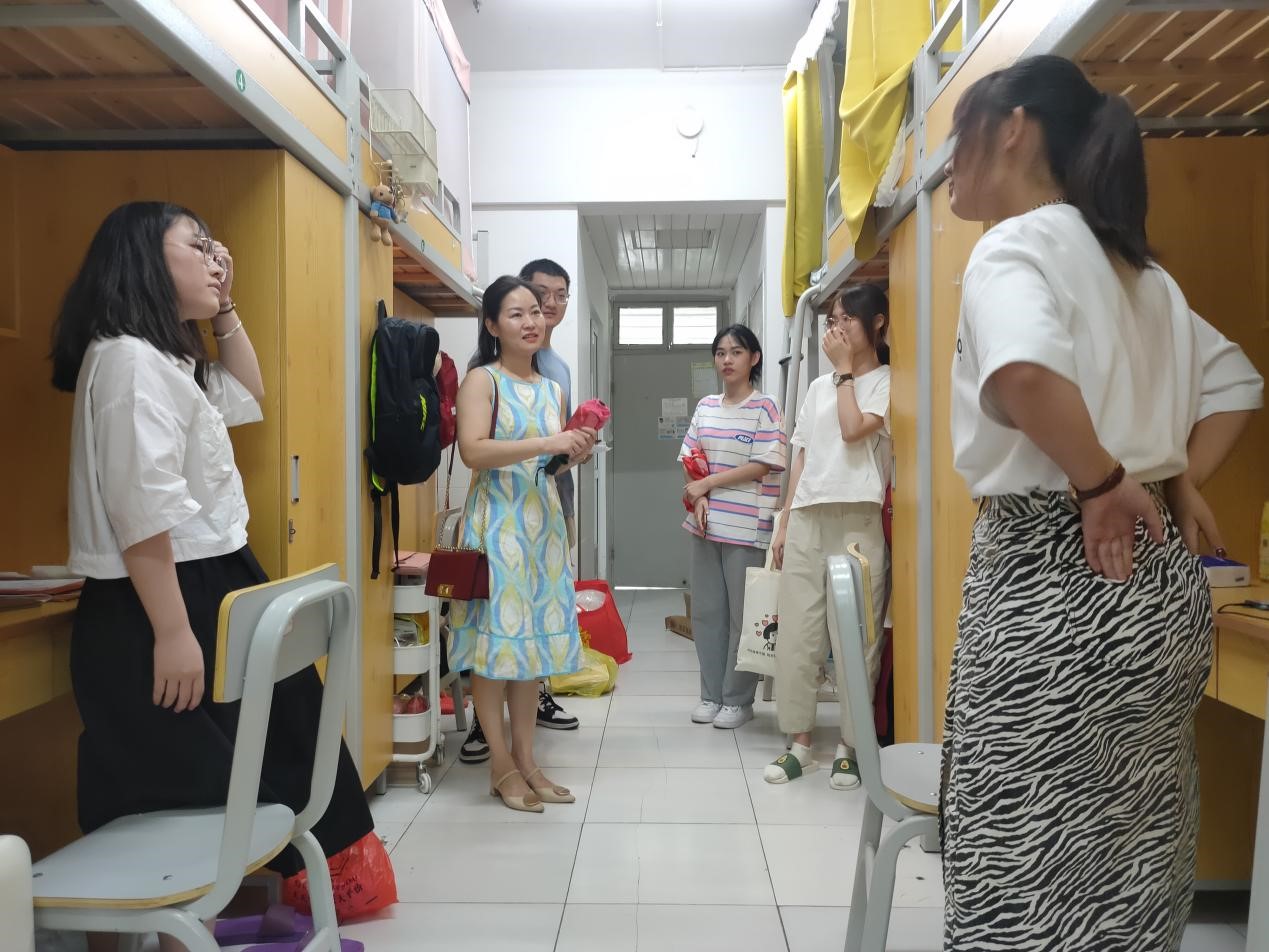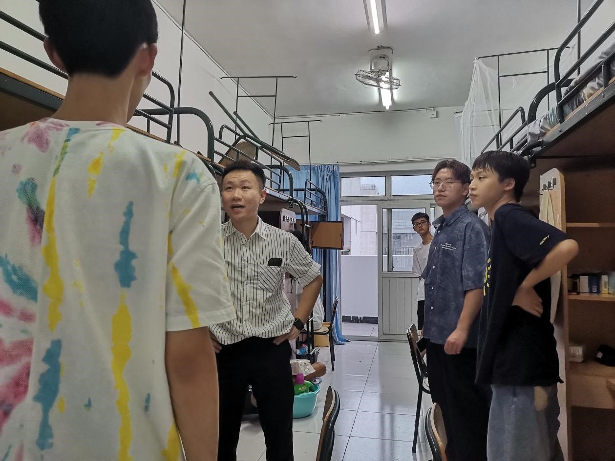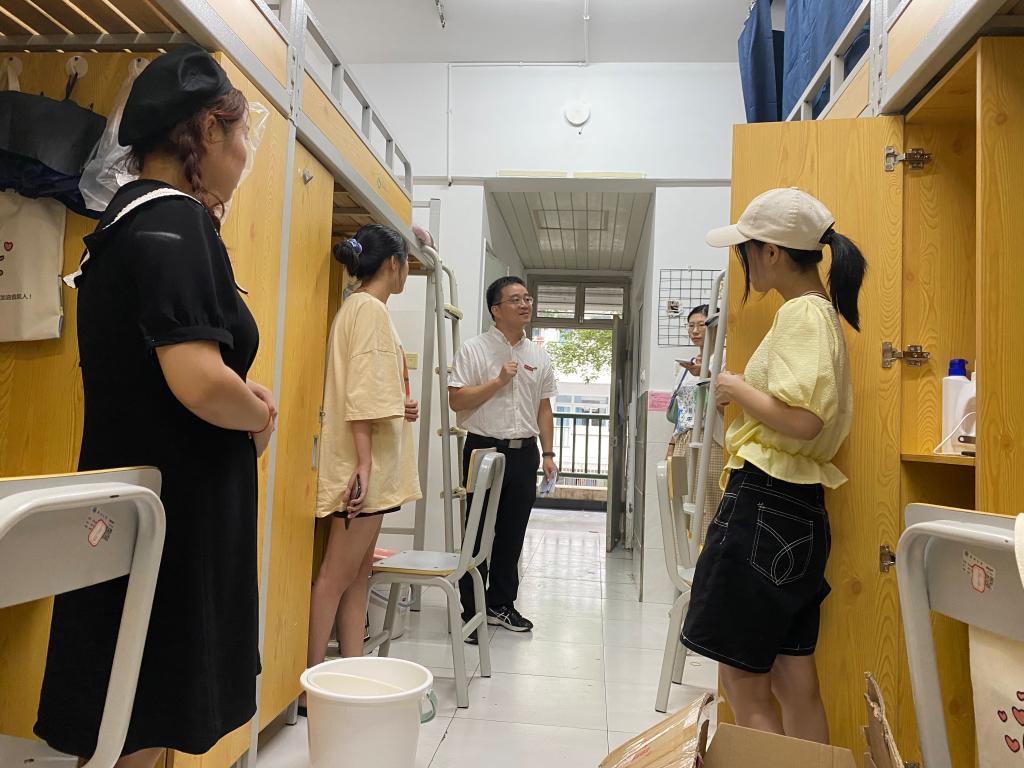 院长邹跃飞、院党委书记朱启鑫、副院长蔡军、院党委副书记蔡晓武携班主任、辅导员、学生干部逐一走访全体新生寝室。
