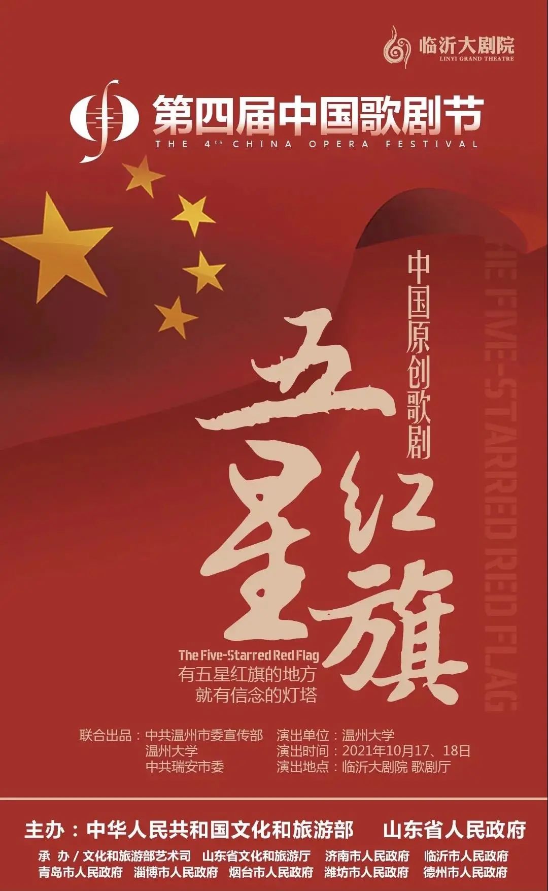 日前,文化和旅游部公布了第四届中国歌剧节参演剧目名单,全国18部新创剧目、6部经典剧目入围展演。温州大学申报的原创歌剧《五星红旗》位列其中,是入围作品中唯一一部由综合性大学出品参演的原创歌剧。10月17日-18日,《五星红旗》将与江苏省演艺集团有限公司出品的《周恩来》和南方歌舞团、广东珠影乐团出品的《红流澎湃》一起在临沂大剧院演出,再次震撼演绎五星红旗背后的故事。