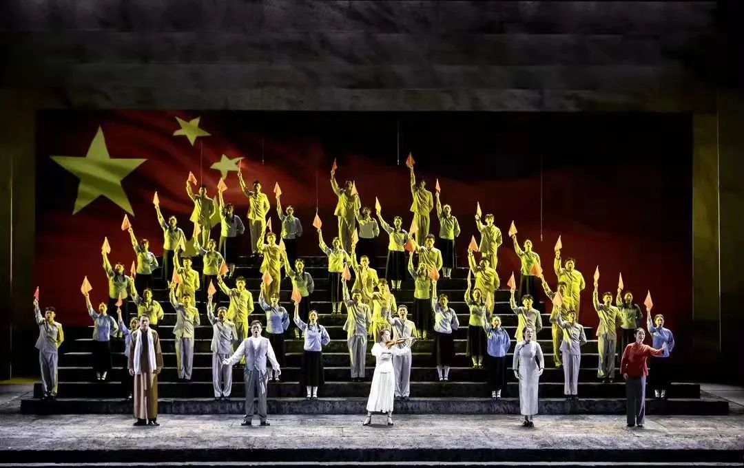 “国旗啊,国旗,祖国的象征;国旗啊,国旗,你指引前进的方向。我们站在太阳升起的地方,心中的旗帜永远飘扬!”作为第四届中国歌剧节演出剧目,由中共温州市委宣传部、温州大学、中共瑞安市委联合出品、精心创排的原创歌剧《五星红旗》于10月17日、18日晚在临沂大剧院上演,为观众们奉上了一部“思想深刻、故事生动、音乐优美、人物鲜活”的艺术佳作,引发“追剧”热潮。