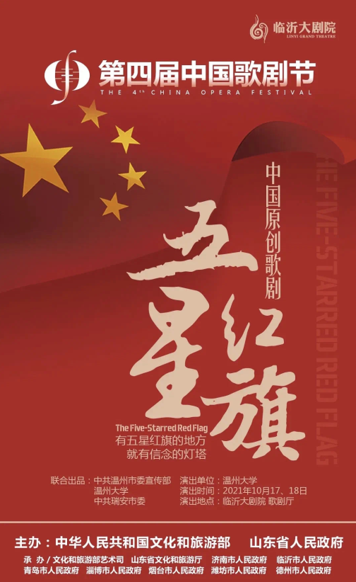 这次首登第四届歌剧节的《五星红旗》,是由温大师生为主体的温州大学合唱团、温州大学交响乐团复排,被组委会安排在山东临沂大剧院歌剧厅首演,它是2019年温州市委宣传部、温州大学和瑞安市委联合出品的70周年国庆献礼剧。