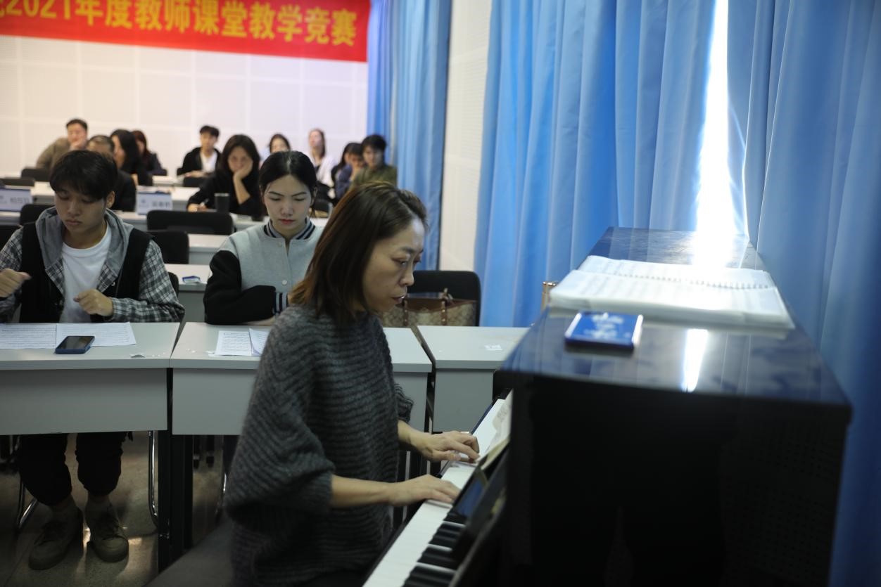 参赛教师在本次比赛中展示出自身扎实的学科知识、过硬的教学技能以及娴熟的课堂驾驭能力。课题涉及钢琴演奏与教学、声乐演唱与教学、即兴伴奏等。在现场讲课环节,教师们巧妙的将理论与实践结合,与学生展开积极良好的互动,现场教学如火如荼的进行。竞赛过后,现场进行了磨课研讨及专家点评活动。蔡军副院长从课程特色、课程设计、多媒体设备应用、PPT设计等多方面多维度点评了本次大赛,与会专家对参评教师进行了一一点评,包括教学方法、教学设计、课堂用语等方面的内容。