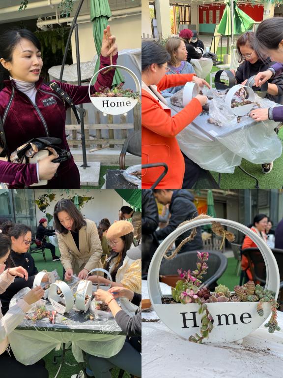 女教工们先到公园边的西餐厅一起享用美味的西餐。餐桌上,女教工们边吃边聊,谈笑风生。餐后专业的花艺师为女教工们讲解如何种养多肉植物并进行别具一格的多肉植物DIY活动。大家围坐在桌子旁,在老师的讲解和指导下,一个个变身巧手花匠,尽情发挥自己的想象力和审美情趣,手持小工具饶有趣味地栽种起来。花艺老师还介绍了多肉植物的生活知识、习性特点,同时就浇水、日照等生活中常见的问题作了较为实用的讲解,让大家受益匪浅。