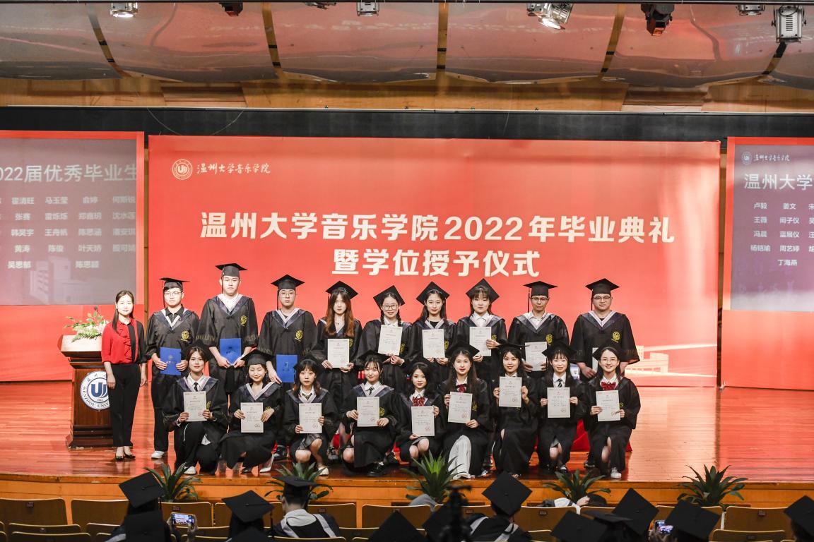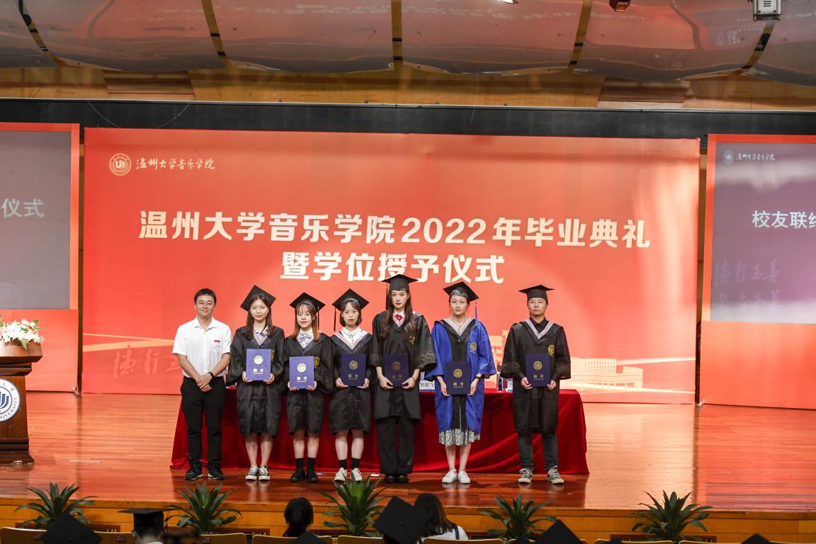 “这是离别的季节,也是收获的季节。”院长邹跃飞教授在讲话中提到,“几年前,同学们凭借着优异成绩,带着对音乐的梦想,考入温大。几年来,生活在浙南闽北赣东地区唯一一所综合性的教学研究型大学,沉浸在多学科教育生态环境里,陶醉在音乐艺术的氛围中。在这美好的大学时光里,同学们寒来暑往,勤学不辍,以坚韧的毅力和优异的成绩完成了学业。"他强调“过去的几年间同学们在省内外各大赛事和各类舞台上成绩斐然,省级、国家级大艺展、歌剧《五星红旗》、温大庆祝建党百年大型交响合唱音乐会等各类高规格的舞台上都曾留下同学们艰辛的汗水和精湛的技艺。”最后,他深深的祝福同学们“无论干哪一行,也无论站在哪个舞台上,都要有着“温大人”这个共同的称谓,无论走得多远,都是母校永远的牵挂,走出校门后,常回家看看,相信未来一定能听到毕业生频传的喜讯,那时母校将为每个人感到无比骄傲和荣光!”