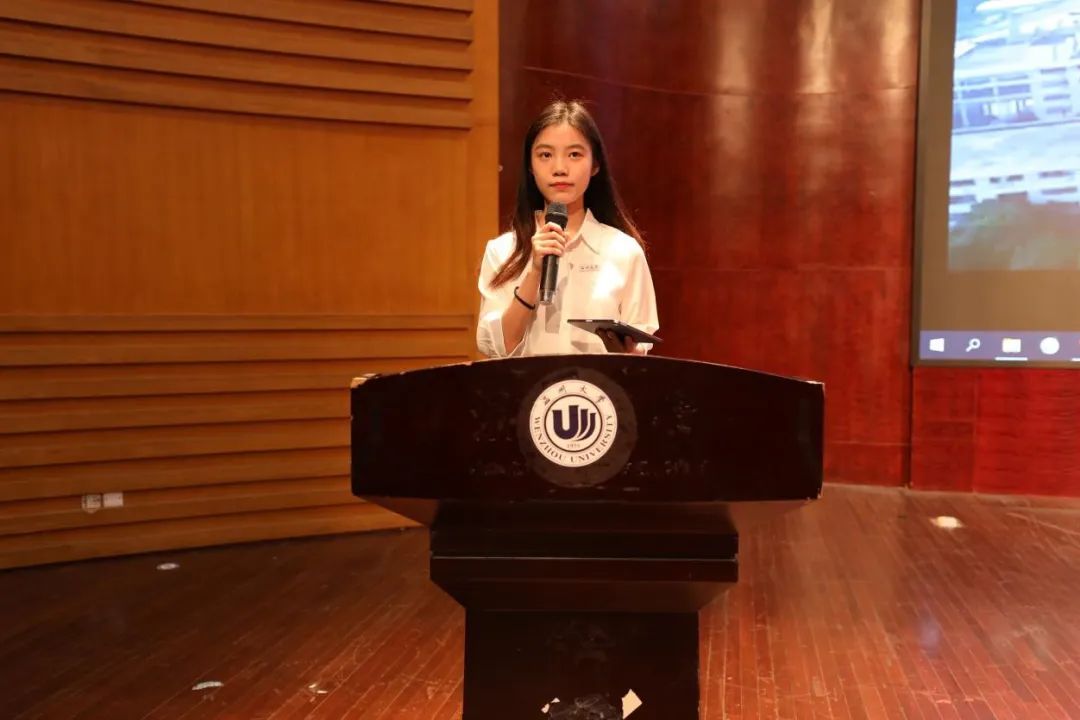 紧接着是优秀学生代表刘璐茜结合自身与新生分享生活经验及学习技巧,并对刚进入大学的22级新生提出建议:制定学习目标,学会挖掘兴趣,积极参加学院活动及学生工作,学会自律。与此同时,2022级本科生代表颜丽然代表新生展望未来大学生活,她表示要脚踏实地,夯实基础,明确学习目标。