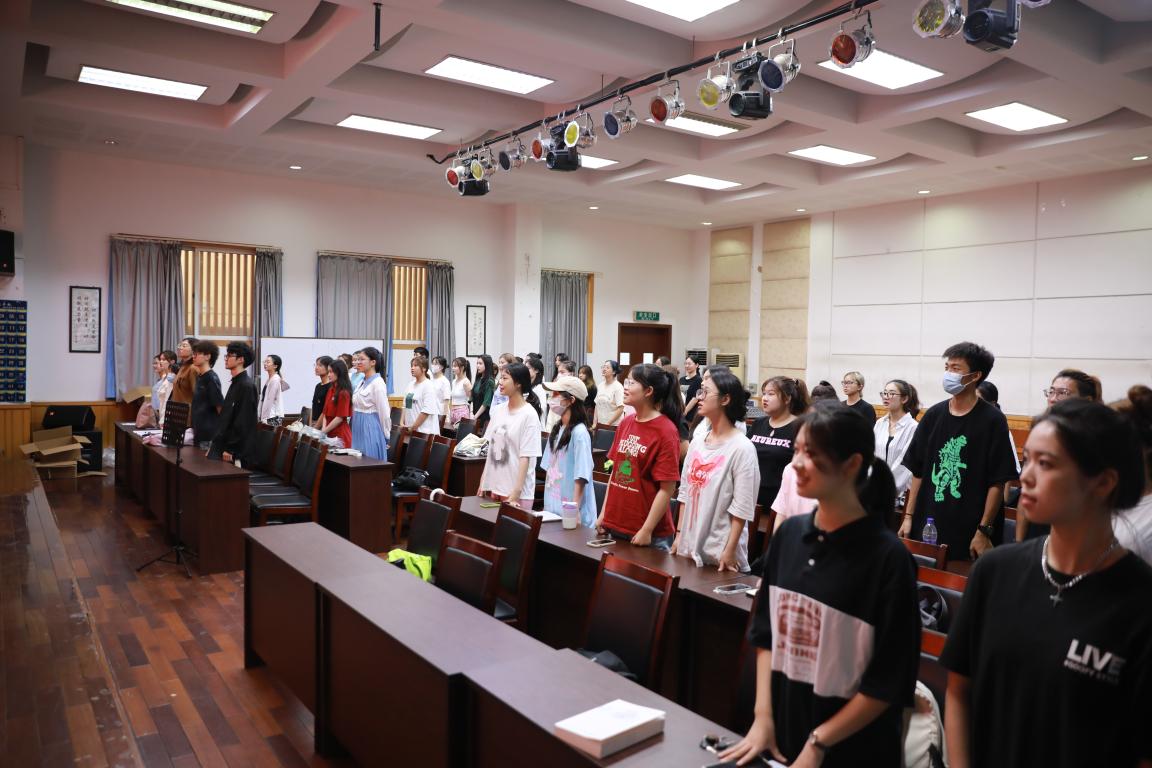 首先,第一项全体学生会成员合唱共青团团歌,慷慨激昂的旋律以及干部们的热情歌唱让整个会议变得如火如荼起来。