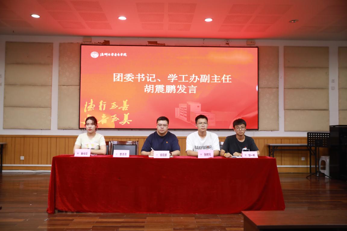 团委学生会第一次全体会议在音乐楼201报告厅举行。出席本次会议的有团委书记学工办副主任胡震鹏老师,辅导员曹清清老师,主席团成员黄佳奕、刘璐茜、邹一帆以及各个部门的部长及干事。会议着重讨论了学生会各个部门的工作要求建议与工作安排以及对各个部门作出指示,最后明确表明了对学院的美好意愿。