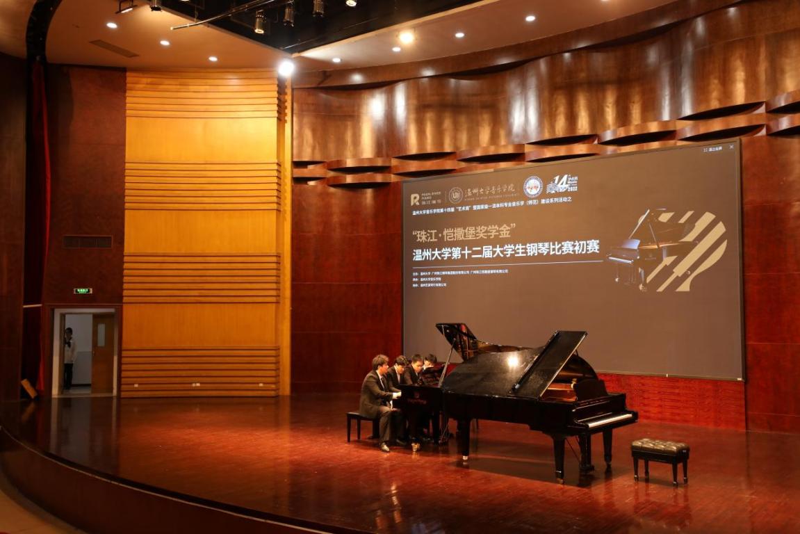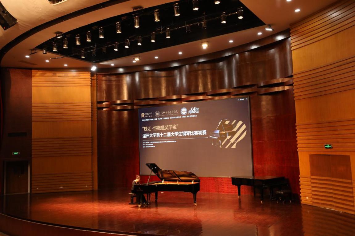 2022年11月16日下午13:30,“珠江·恺撒堡奖学金”温州大学第十二届大学生钢琴比赛初赛分别于温州大学南校区音乐厅与音乐楼201教室举行。本次比赛分为专业外国组、重奏组、专业中国组、教育组、业余组、自弹自唱组。
