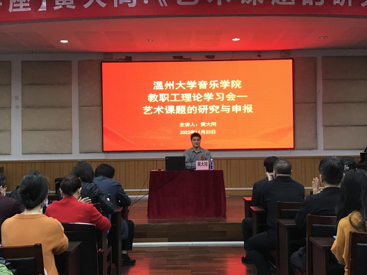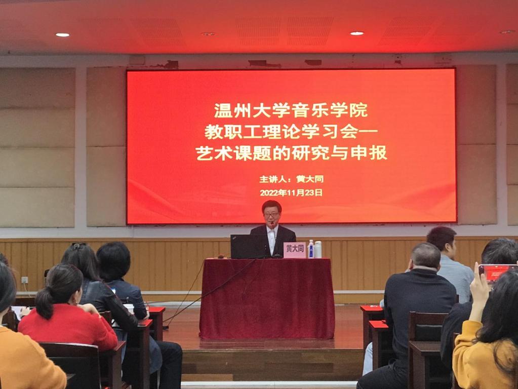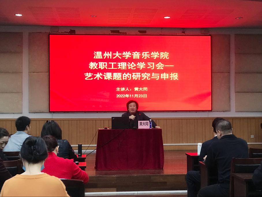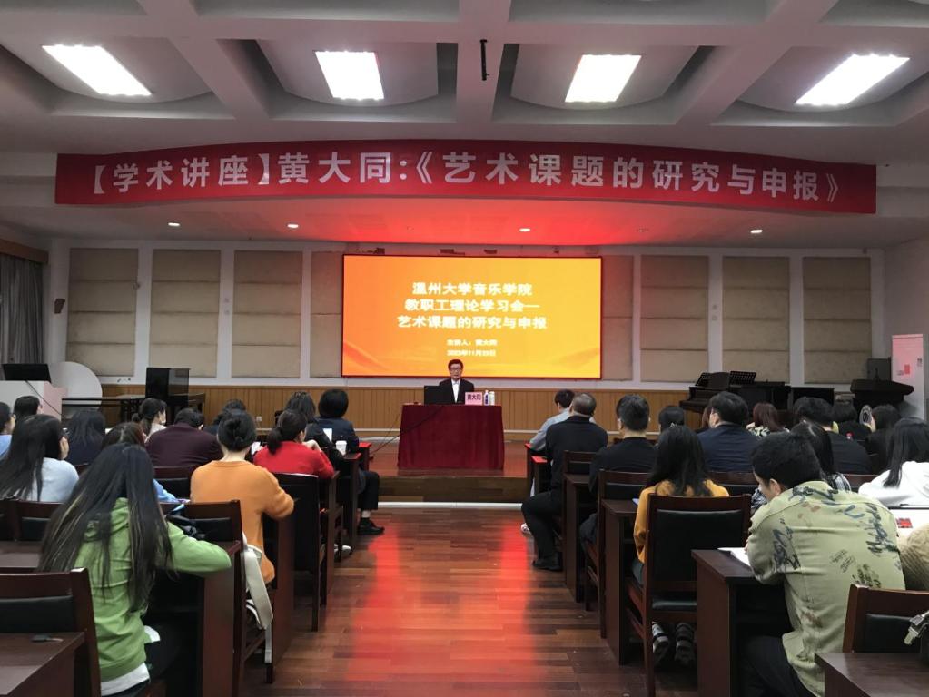 黄大同教授用有趣的言语和丰富的实例,就艺术课题的研究申报所遇到的种种困难,提供了许多简而易行、行之有效的方法。让在场的老师学生们受益匪浅,是一场别开生面且难忘的讲座。