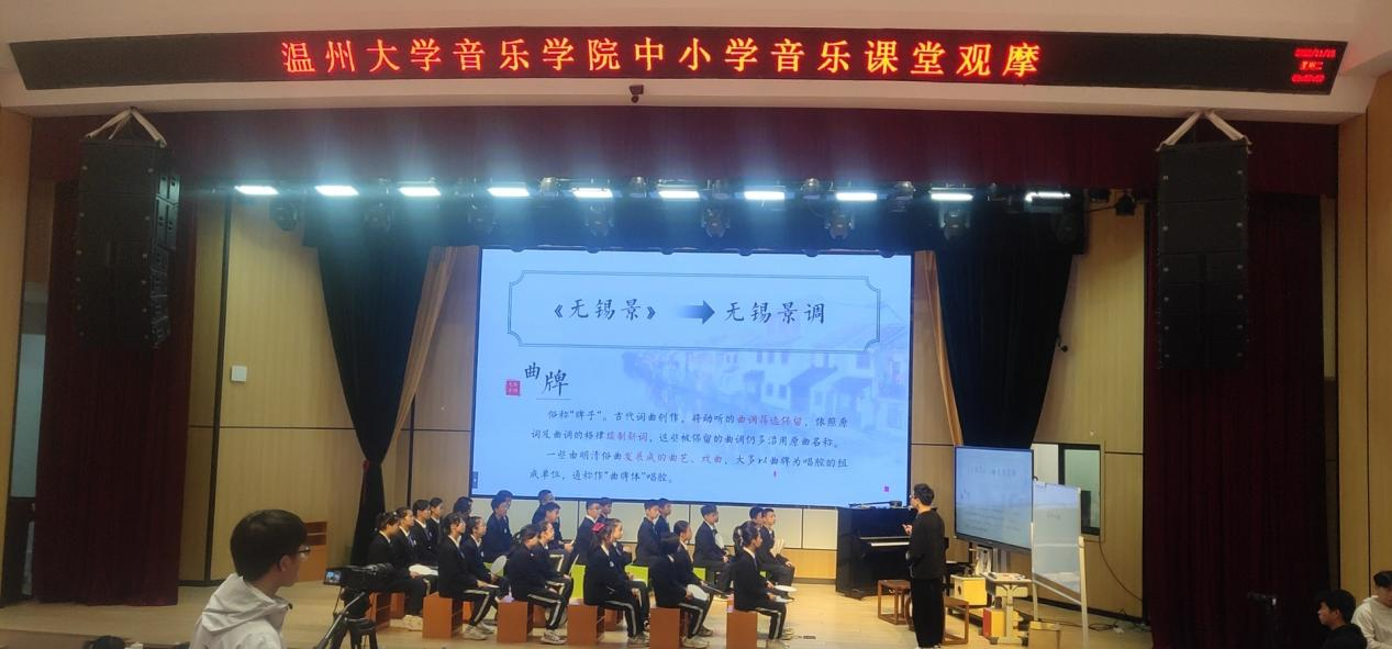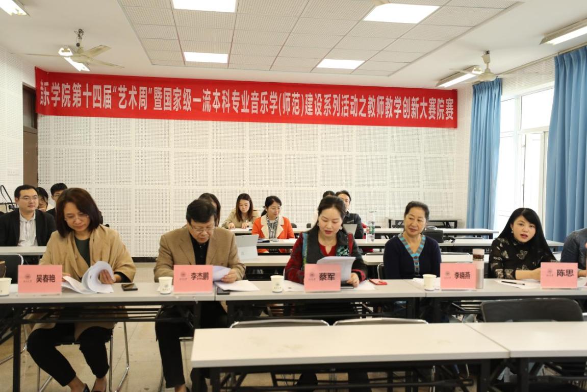 十四届艺术周暨国家级一流本科专业音乐学(师范)建设系列活动之第三届教师教学创新大赛院赛,“搭建交流平台”开展了教学竞赛交流研讨会,推动教学创新,促进教学质量;开展“明心”教学示范课,展示教师教学成果;邀请校督导组组长袁建国教授莅临学院指导教学工作,改变教师新观念,破解教学新瓶颈;全体教师共同学习“”基于OBE理念的教学设计与教学改革”专题讲座,不断促进教师综合素质、专业化水平和创新能力全面提升,打造高水平、结构化教师教学创新团队,持续推进学院一流本科专业的建设。