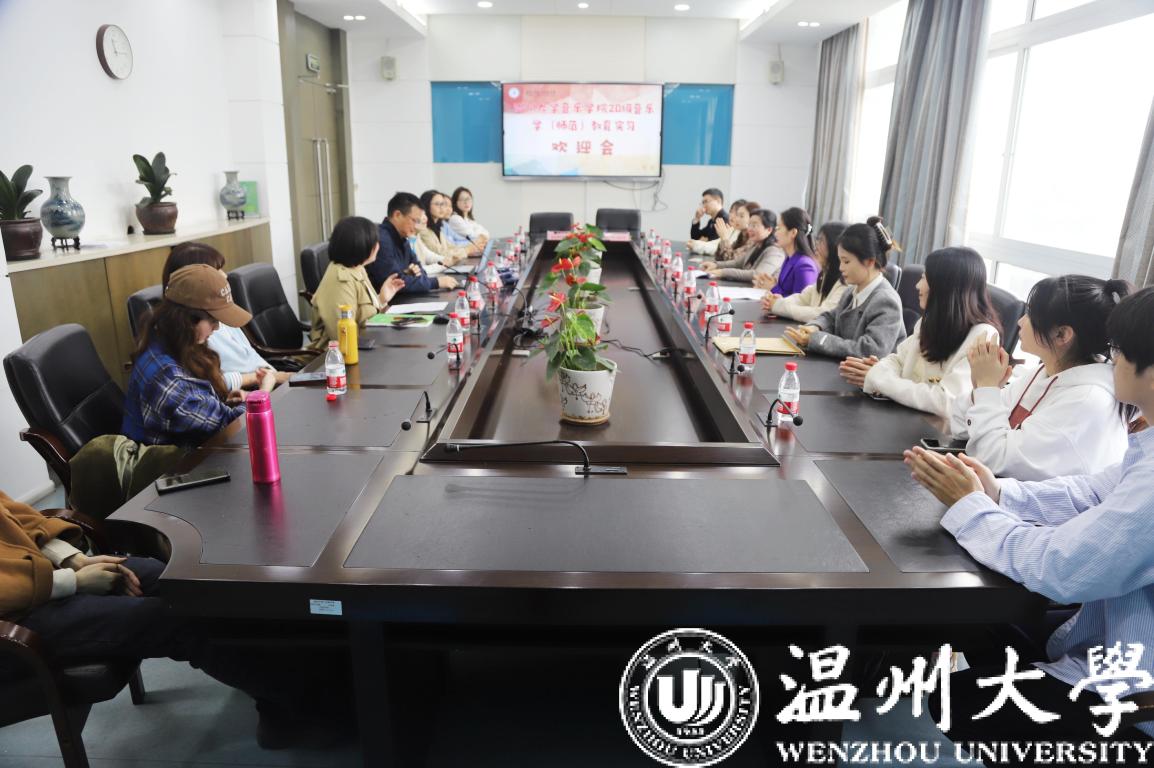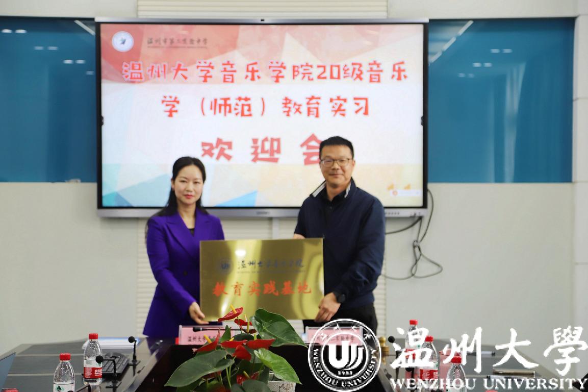 师生的到来表示热烈的欢迎,潘智敏校长致欢迎词潘校长介绍学校的发展史和“润泽教育,向美而行”的教育理念,希望实习学生借助实习契机,为温二实乃至温州的音乐教育添砖加瓦。教务处冯超伟主任介绍了班主任和音乐指导师。
