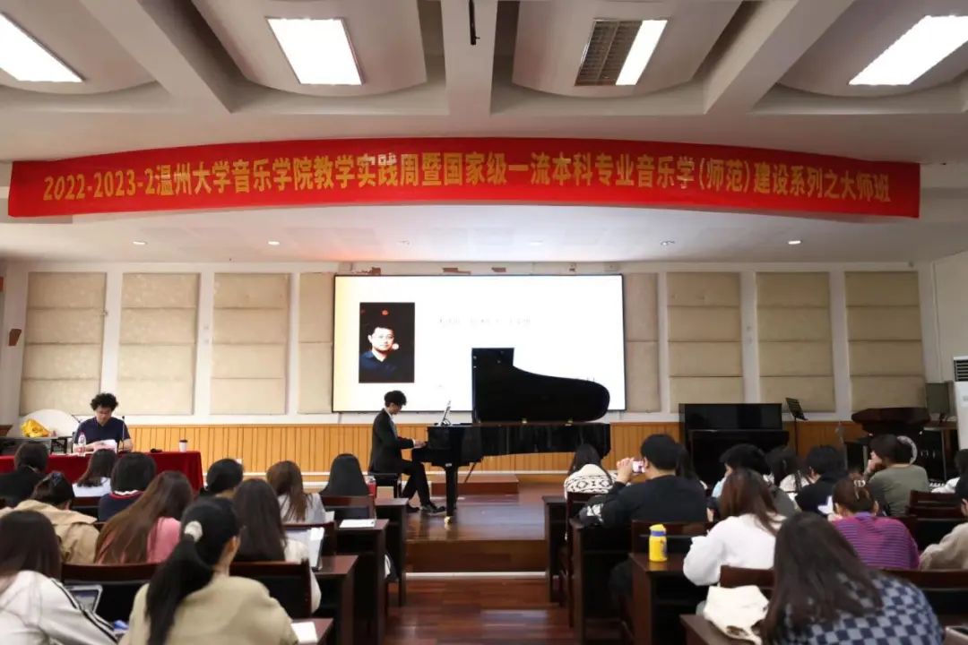 张奕明教授以直观形象的思维方式、生动幽默的语言与娴熟精湛的示范演奏巧妙地启发了各位同学,其引人入胜、极富感染力的讲解也让现场的师生受益匪浅。温州大学为学子提供了与大师交流的平台,让学生们有机会与大师面对面交流,通过这次大师课,相信学子们不仅在琴艺上有了进步,同时也收获了一段非常宝贵的记忆。