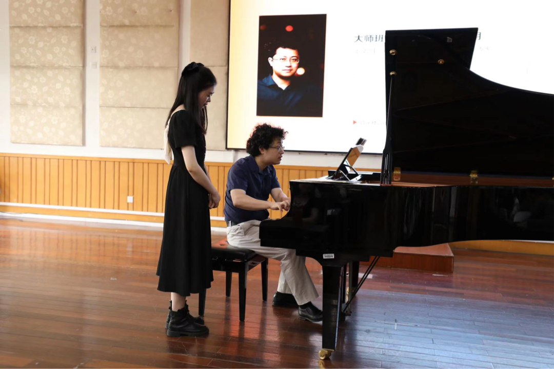 干货满满的钢琴大师课拉开序幕,激昂澎湃的钢琴曲振奋人心,学子们轮番上台勇敢表演,一起在聆听中感受乐美,在指导中进步,在展示中成长!