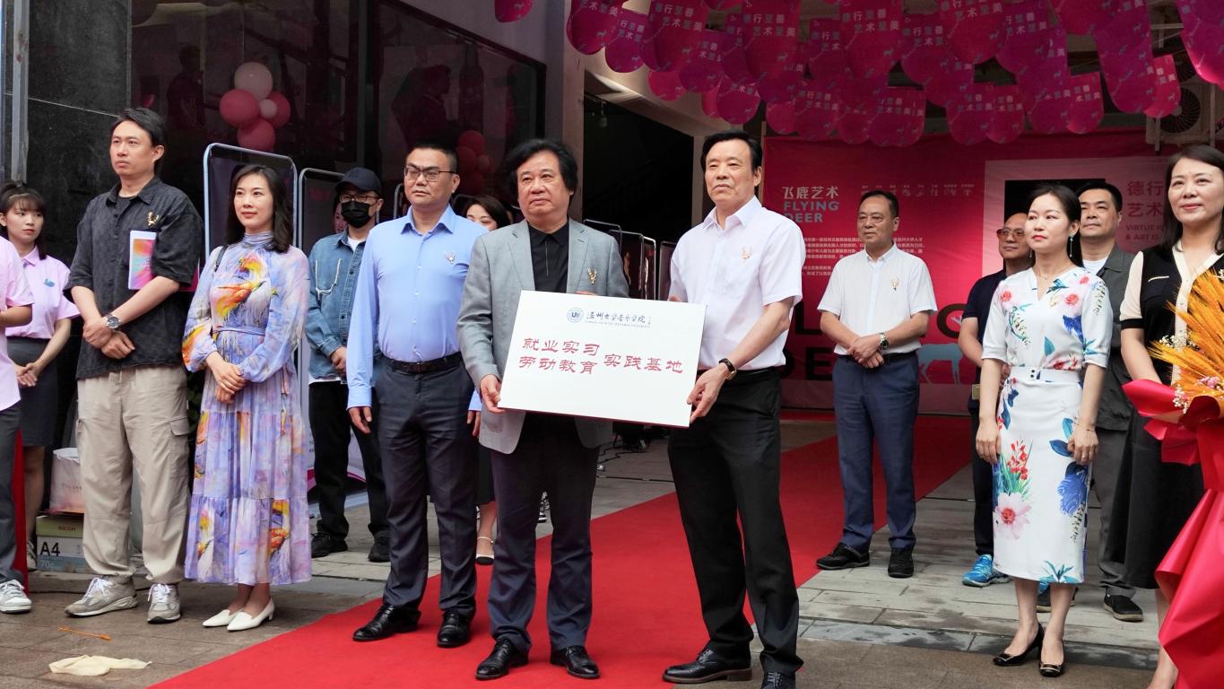 随后举行隆重授牌仪式,院长邹跃飞向瑞安飞鹿艺术培训有限公司授“温州大学就业实习与劳动教育实践地基”牌匾。