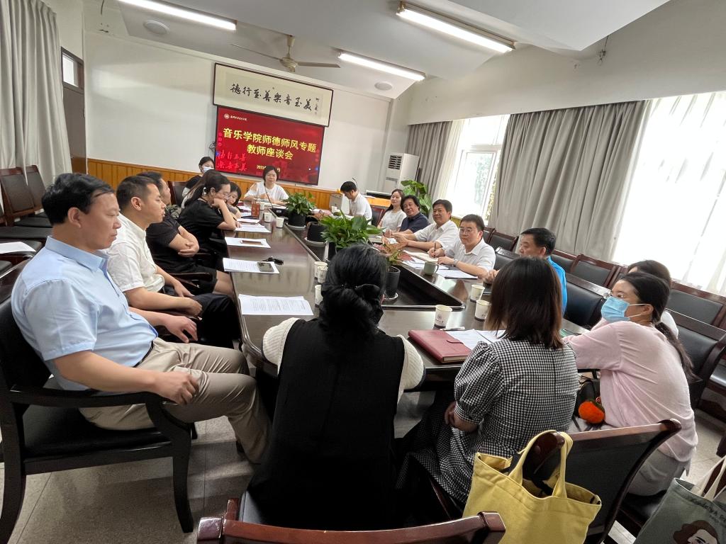 在音乐楼203会议室召开师德师风专题座谈会。校党委副书记庄兴忠出席会议并讲话。会议由学院党委书记朱启鑫主持,学院领导班子、各系室主任、教师代表参加会议。