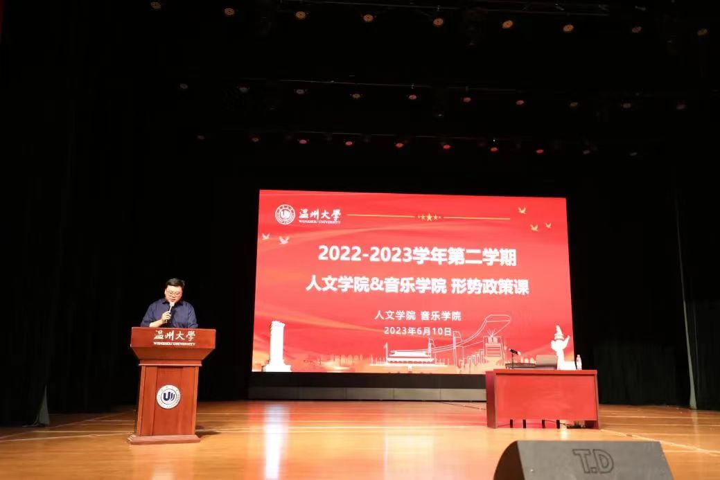 温州大学马克思主义学院副院长孙邦金教授从二十大精神及传统文化的相关论述出发,讲述了中华文明的突出特性、精神标识和文化精髓,并基于新时代中国特色社会主义文化发展道路具体阐释了中华优秀传统文化与马克思主义基本原理相结合的时代路径,为同学们解构了中国式现代化的文化形态。他表示,身为新时代的新青年,我们既要坚定文化自信,又要秉持开放态度,更要坚持守正创新;担青年使命,承文化底蕴,在历史的新起点赓续中国文脉,谱写当代华章。