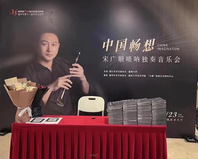 《畅想中国——宋广顺唢呐独奏音乐会》不仅是温州大学90华诞的献礼,也是温州第十一届市民文化节的重头戏。在这台音乐会中,观众不仅能一睹宋广顺的演奏风采,还能看到他带领下的民乐团、鼓乐团合力呈现的振奋人心的效果。在宋广顺的努力与普及之下,温州掀起了一股不小的“唢呐潮”。不断壮大规模的唢呐学习队伍,正充实和改变着温州城的音乐文化氛围,为”千年商港“的文化自信悄然树起了一面不一样的旗帜。