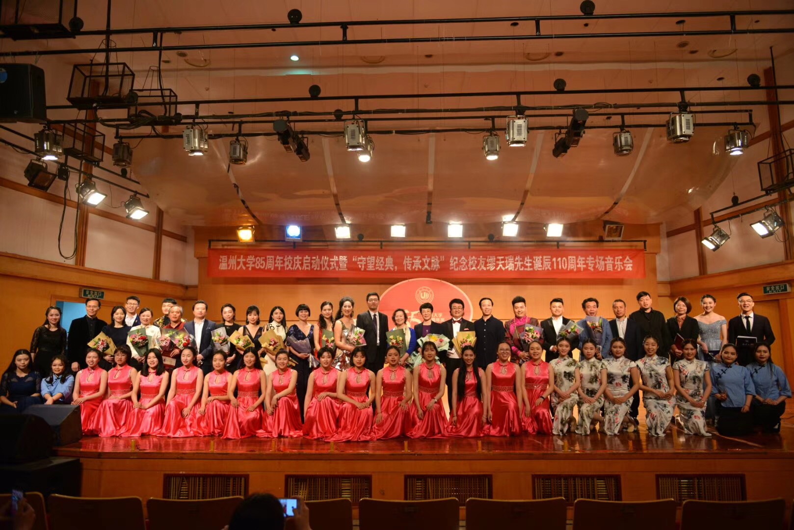 2018年4月18日晚上六点三十分,“守望经典•传承文脉”温州大学85周年校庆启动仪式暨纪念校友缪天瑞先生诞辰110周年音乐会正式开幕。台下座无虚席,观众们都翘首以盼演员们的精彩演出。