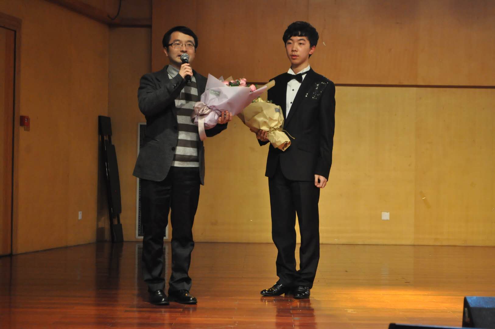 音乐学系学生吕心桔同学与丁馨香同学分别演奏了莫扎特《奏鸣曲》(K331)第一乐章和拉斐尔的《水之嬉戏》。周挺大师以简洁明了的语言、准确到位的剖析对两首作品与两位同学的演奏分别从左右手的演奏,整体的强弱以及和声甚至一些细小的和弦所表达的情感方面对两名同学的演奏一一作了详尽讲解的与指导。并且模拟提琴的演奏方式对低音进行分析,在对吕心桔同学的授课过程中,他指出吕心桔同学比较注重右手的旋律表达,可是好听的旋律需要靠左手的支撑。在对丁馨香同学的授课过程中,他强调了耳朵的重要性,要求所有的音交织在一起,自己技巧方面的手指的柔顺,不能让任何声音漏掉,在近两个小时的授课过程中,在座的广大师生始终被周挺大师严谨治学的专业态度与轻松幽默的授课方式与一丝不苟的治学态度所折服。