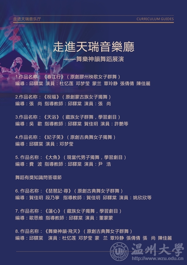 青年舞蹈教师邱驿棠主创。参加本次音乐会的嘉宾有温州大学教学督导王守琢教授、温州大学教学督导袁振南教授、温州大学建工学院党总支书记刘青松老师、国产成人电影-免费看色情影片