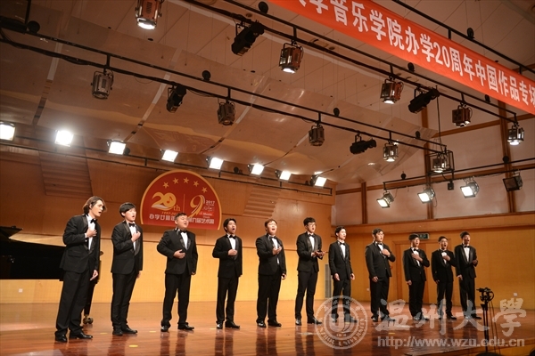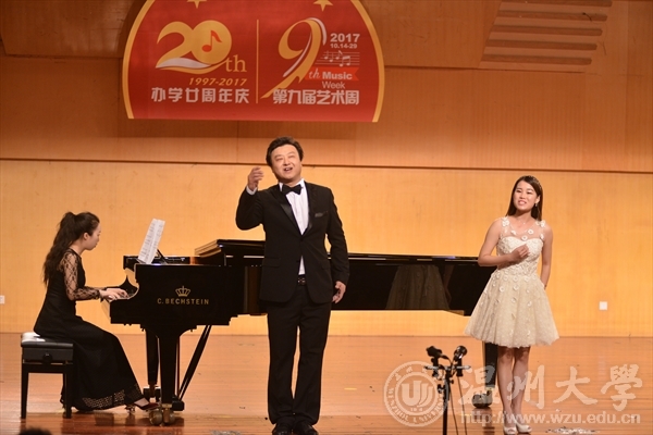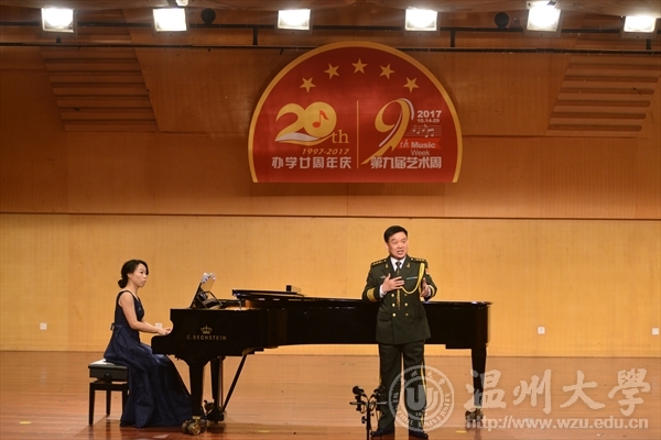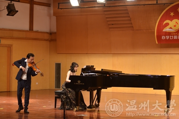 办学20周年中国作品专场音乐会”在天瑞音乐厅正式上演,莅临音乐会的嘉宾有温州大学党委书记林娟娟、温州大学党委副书记牟德刚、温州大学党委委员副校长蔡曙光和温州大学党委委员宣传部部长潘玉驹及相关部门负责人等。 本场音乐会的主题是彰显我们的中国梦,多部作品都歌颂了我们伟大的祖国,包括有男声独唱《战士歌唱毛主席》、丝弦五重奏《映山红》等。不仅如此,还有温大外籍教授带来的中国风小品三首《半个月亮爬上来》、《大海啊,故乡》、《太阳出来喜洋洋》,台下观众如潮水般汹涌的掌声,随着钢琴曲的落下而澎湃高涨。除此之外,由温大国产成人电影