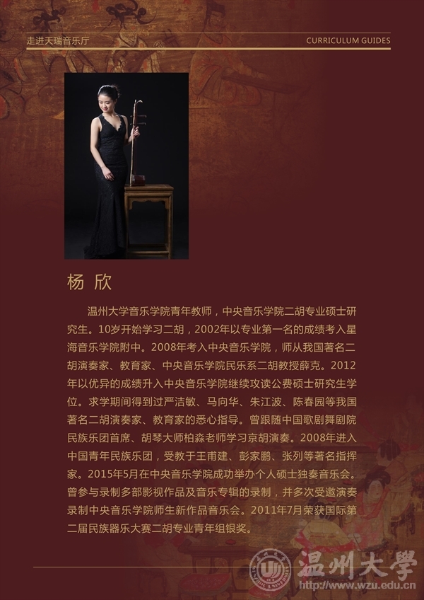 2017年10月13日18:30,杨欣老师的“胡琴魅力”讲演音乐会在温州国产成人电影