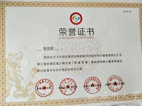 级研究生陈佳丽向大会提交的舞蹈学术论文《中国民族民间舞蹈教学的现状和问题梳理探讨》从百余篇论文中脱颖而出,在十几篇优秀获奖论文中占有一席之地。为国产成人电影-免费看色情影片 争得了荣誉。