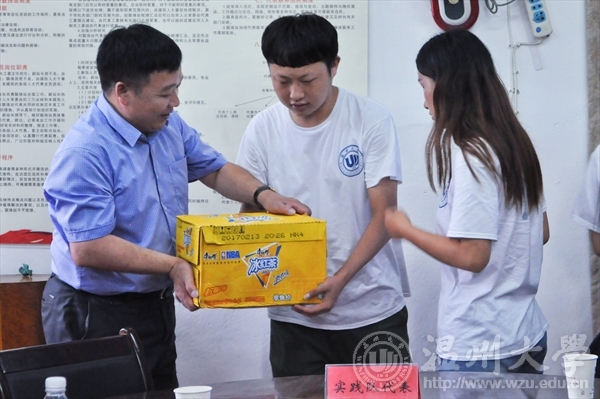 党总支书记方建敏、建工学院党总支书记刘青松的陪同下来到乐清市仙溪镇慰问温州大学“乐拍乐清乐拍乐美”暑期社会实践队并举行了实践队座谈会。乐清市仙溪镇党委书记潘周锋、乐清市市委宣传部部务成员洪蛮、乐清市团市委副书记孙宁哲、仙溪镇团委书记郑翔宇等当地领导出席座谈会。座谈会由仙溪镇党委宣传委员黄敏辉主持。