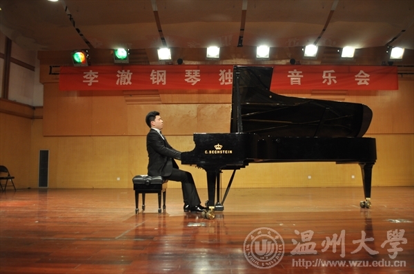 天瑞音乐厅举行了李澈钢琴独奏音乐会。前来观看的观众有温州大学的学生及校外慕名而来的家长与学生。