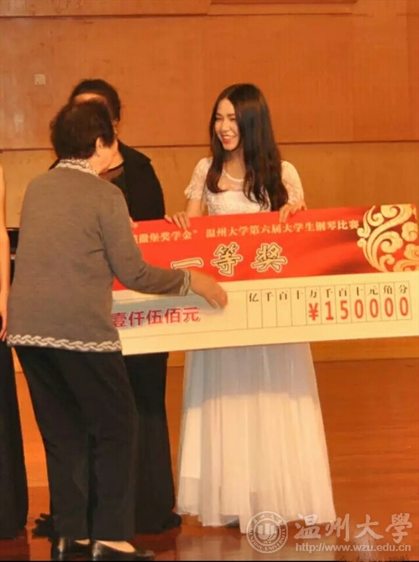 晚上七点颁奖音乐会准时开始,由朱雅芬教授,沈德刚主席,陈飚老师,陈颖老师,陈思老师给分别给获奖同学颁奖。随后钢琴教育家朱雅芬教授做了精彩的总结,鼓励同学们能继续学好钢琴,并对同学们的不足提出来建议,表现出对同学们的一种期盼!紧接着由本次钢琴比赛每组的一等奖得主上台为大家带来精彩的钢琴表演,随着动听的琴声,“珠江·恺撒堡奖学金”温州大学第六届大学生钢琴比赛圆满结束!