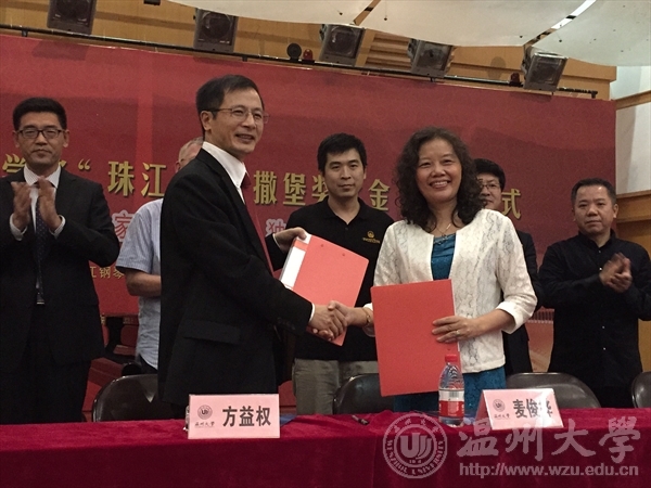 在音乐教育方面的实力,并表示珠江钢琴将会践行社会责任,大力助推音乐教育事业发展,也详细阐述了珠江钢琴集团与我校在校企合作、共助人才培养的规划。最后,副校长方益权、珠江钢琴集团麦俊桦董事分别代表校企双方进行“珠江•恺撒堡奖学金”签约仪式。由珠江钢琴集团股份有限公司出资设立“珠江•恺撒堡奖学金”,用于奖励钢琴比赛中表现出色的我校优秀学子。