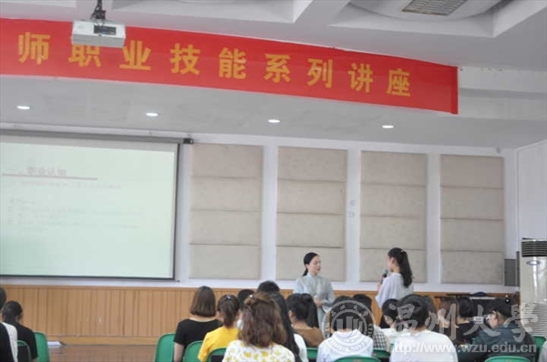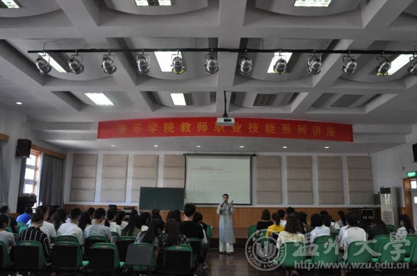 音乐楼201室开展了教师技能系列讲座之三《说说“中小学音乐教师资格证考试”的那些事》,本次讲座由温州滨海学校副校长――郑旭英老师为学生讲解如何“结合课标,解读教材,关注音乐, 探究教法”。