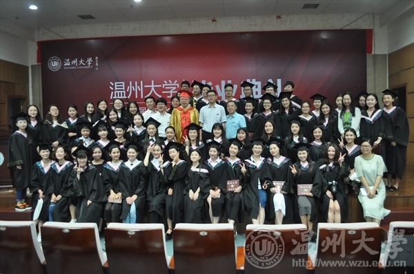 王志毅副院长宣读了学校聘任的校友联络员名单,并颁发了聘书。在几项议程之后,由温州大学李校堃教授亲自为每位毕业生拨穗、颁发毕业证书,并进行合影留念。李校长亲切的笑容、温和的话语让每位毕业生从心底感到了温暖。