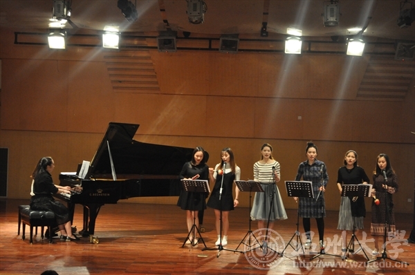 2016年4月27日晚18:30,公开课堂第五讲《回味童年》歌曲编配讲演音乐会在温州大学天瑞音乐厅正式开讲。本次音乐公开课堂由阮辛怡老师主讲。童年的记忆虽然遥远,但那熟悉的旋律仍旧能穿越时间的海洋再次回想在耳边。
