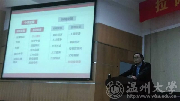 刘滨老师围绕就业现状展开了本次讲座。他首先用图片和历年数据清晰的让同学们了解到当今就业形势的严峻,很多毕业生都处于就业边缘。他引用未来学家凯文凯利的话:“在这个形成的时代里,所有人都会成为菜鸟,更糟糕的是,我们永远都会是菜鸟,并且永远是菜鸟。”并解释说:“时代在变,无论我们技术、水平高低,这些都不重要,我们应该保持一个开放的心保持虚心的状态,去接纳一些新鲜的事物。”刘滨老师说在职场当中最终要的是方法能力和社会能力,而这些是学校中没有传授的内容,所以大家要通过自身学习来完善的。如果对自己的有所了解,知道自己内心想要什么,能做什么,那么你未来的方向就越清晰。我们要面向未来,关注各个领域的事情,而不是做一只井底之蛙,只看向那一片天。随后老师向大家推新出许多大家不曾想到的行业,有效的为同学们做出了启迪。