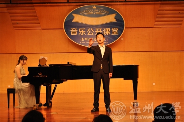 在本场音乐公开课堂上,刘玉亭老师首先为在座的观众讲解了开设“音乐公开课堂的意义,刘老师说:“开设这个艺术课程的目的主要包括以下三个方面,一是为了培养学生高雅的审美品位,提高大学生的人文修养;其次了解中外的优秀作品,尊重多元文化;三是培养实践能力,提高感受美,表现美,鉴赏美,创作美的能力,促进学生的全面和谐发展。”接下来刘老师为在场的观众梳理了一些声乐的基本知识,讲解了三大唱法命名的由来,并亲自为同学们演唱了多首民歌,如云南民歌《猜调》、乐清民歌《对鸟》等,在场的观众均被刘玉亭老师精湛的演唱技巧所震撼。在本场讲演音乐会上,刘玉亭老师还带来了他的多位弟子,为在场的观众带来了《思恋黄河》、《望乡词》、《西班牙女郎》等多首脍炙人口的中外名曲,赢得了全场观众的阵阵掌声。