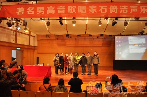 的学生代表分别进行了示范教学。在教学中,石倚洁老师充分展示了其高超而又精湛的声乐技巧,并用幽默风趣的语言让同学们领会到声乐的魅力。整场讲座掌声不断!