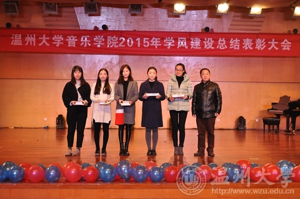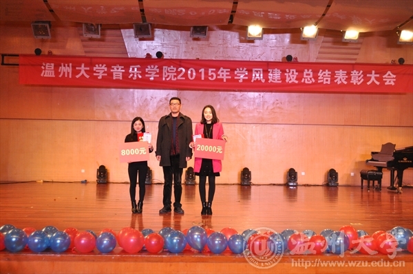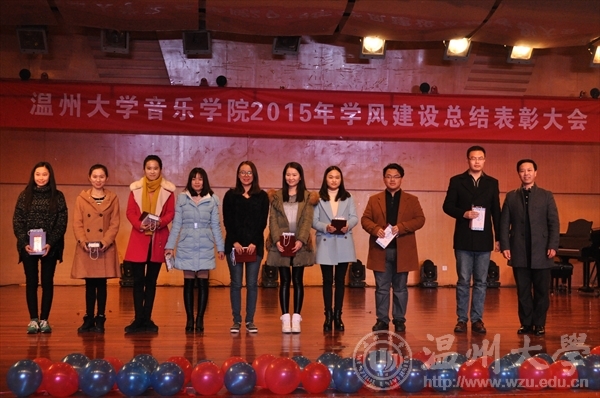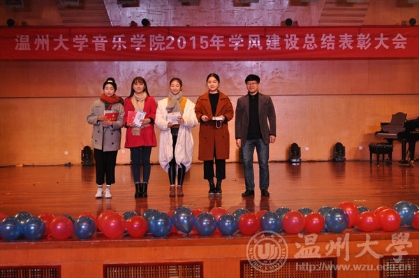 在2015-2016学年学风建设的各项工作。在本次活动中,学院党政领导还分别为在本年度获得国家奖学金、浙江省大学生艺术节奖项、新苗人才计划等荣誉一一进行了颁奖,送上了荣誉证书及学院精心制作的礼盒,天瑞音乐厅中掌声此起彼伏。